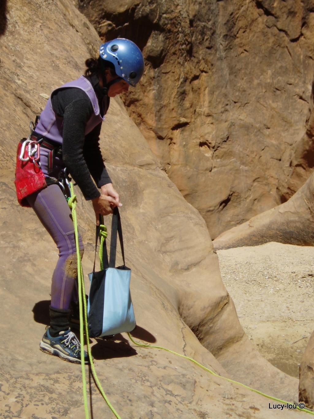Cristina Amat ready to trow homemade potsand with a back up rope