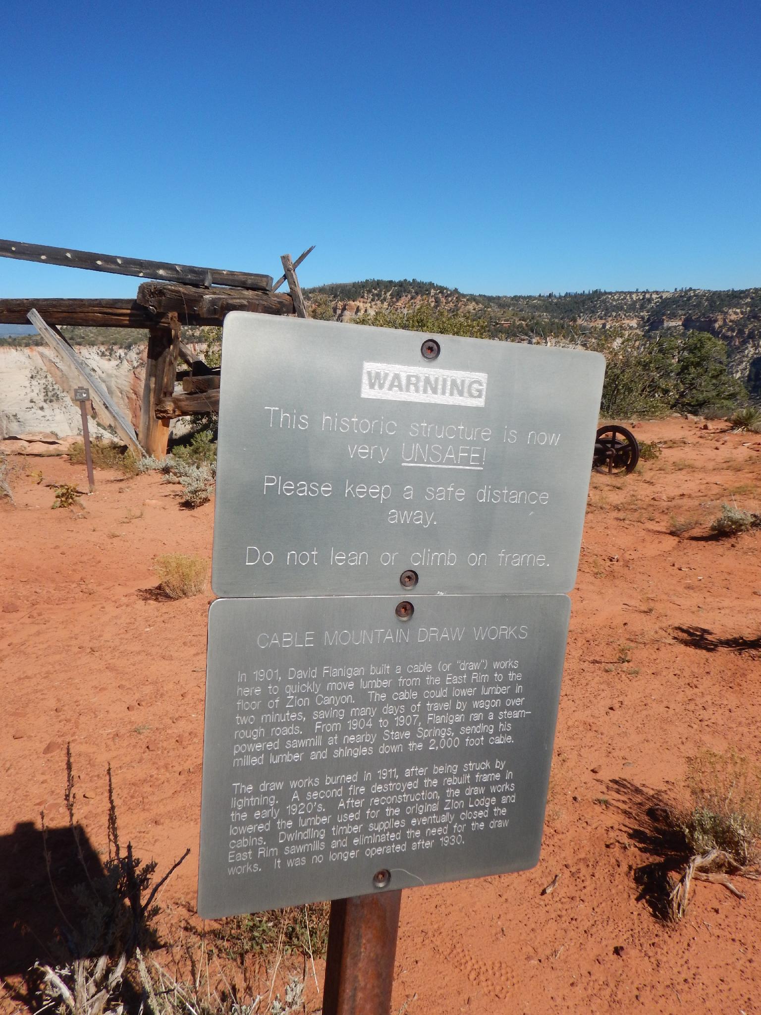 The Cable Mountain warning sign.