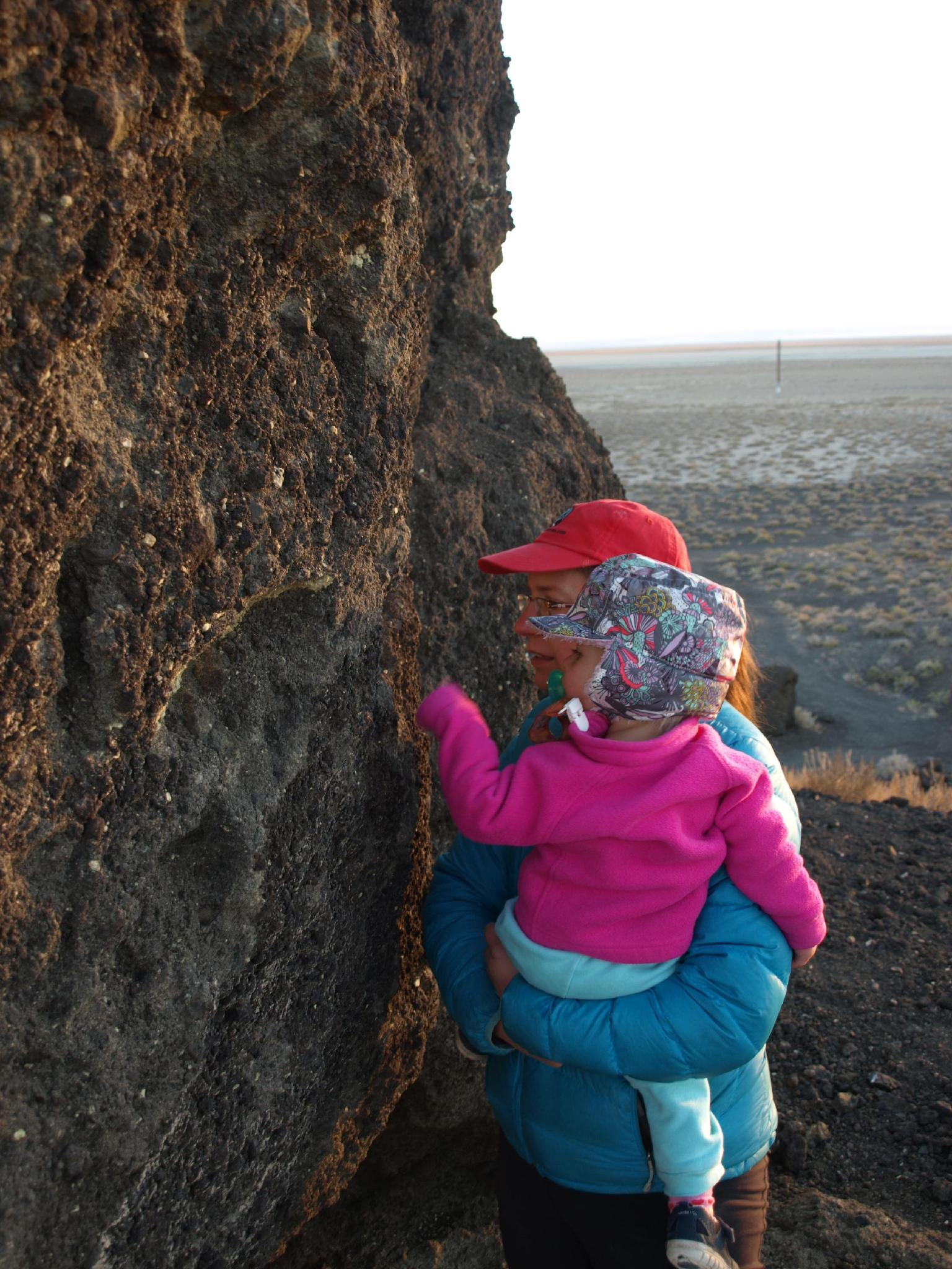 Diane and Ruby investigating the sunstones still in the larger rock layer.