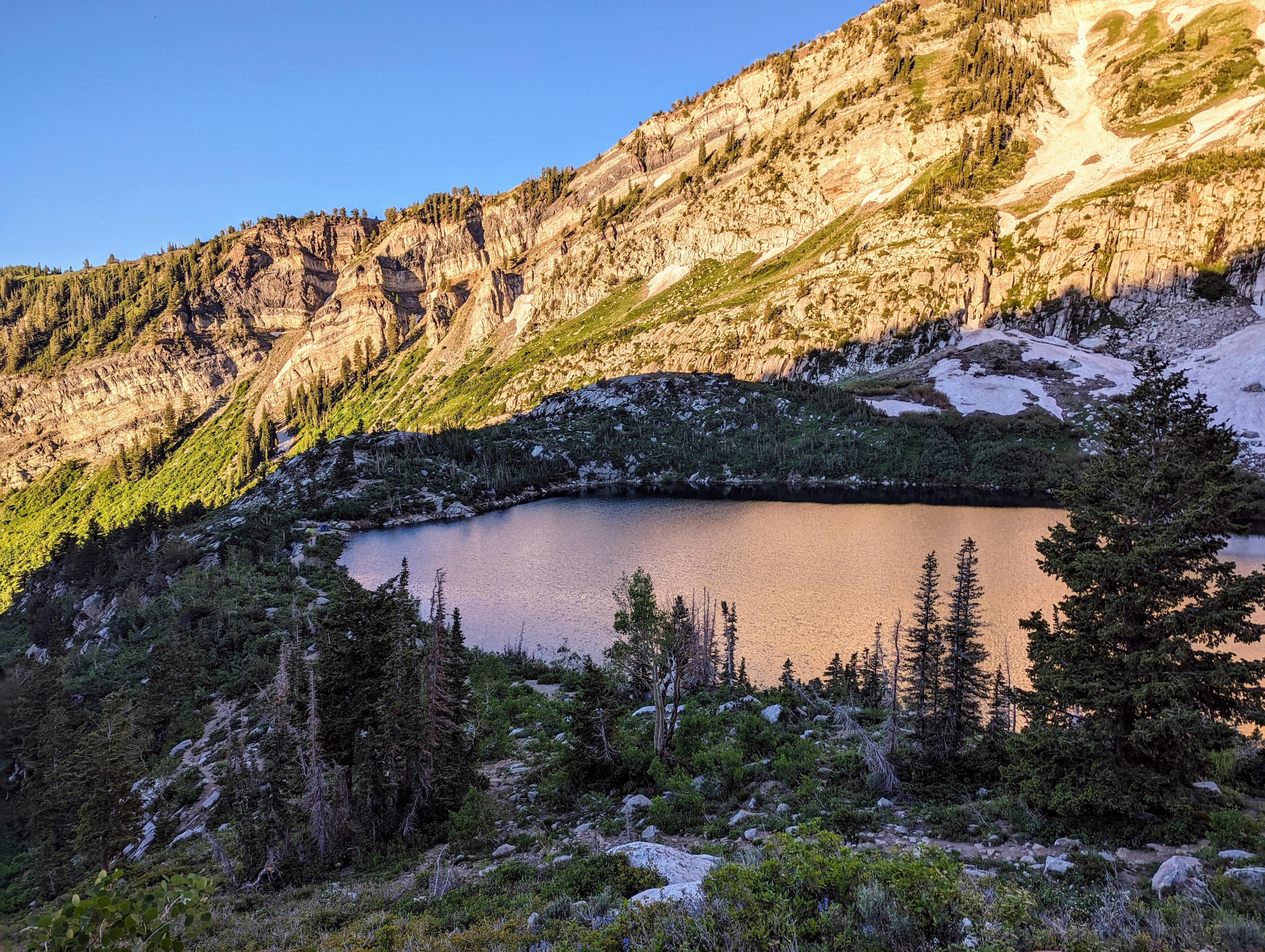 Morning light on Silver Lake while heading up to Silver Glance Lake