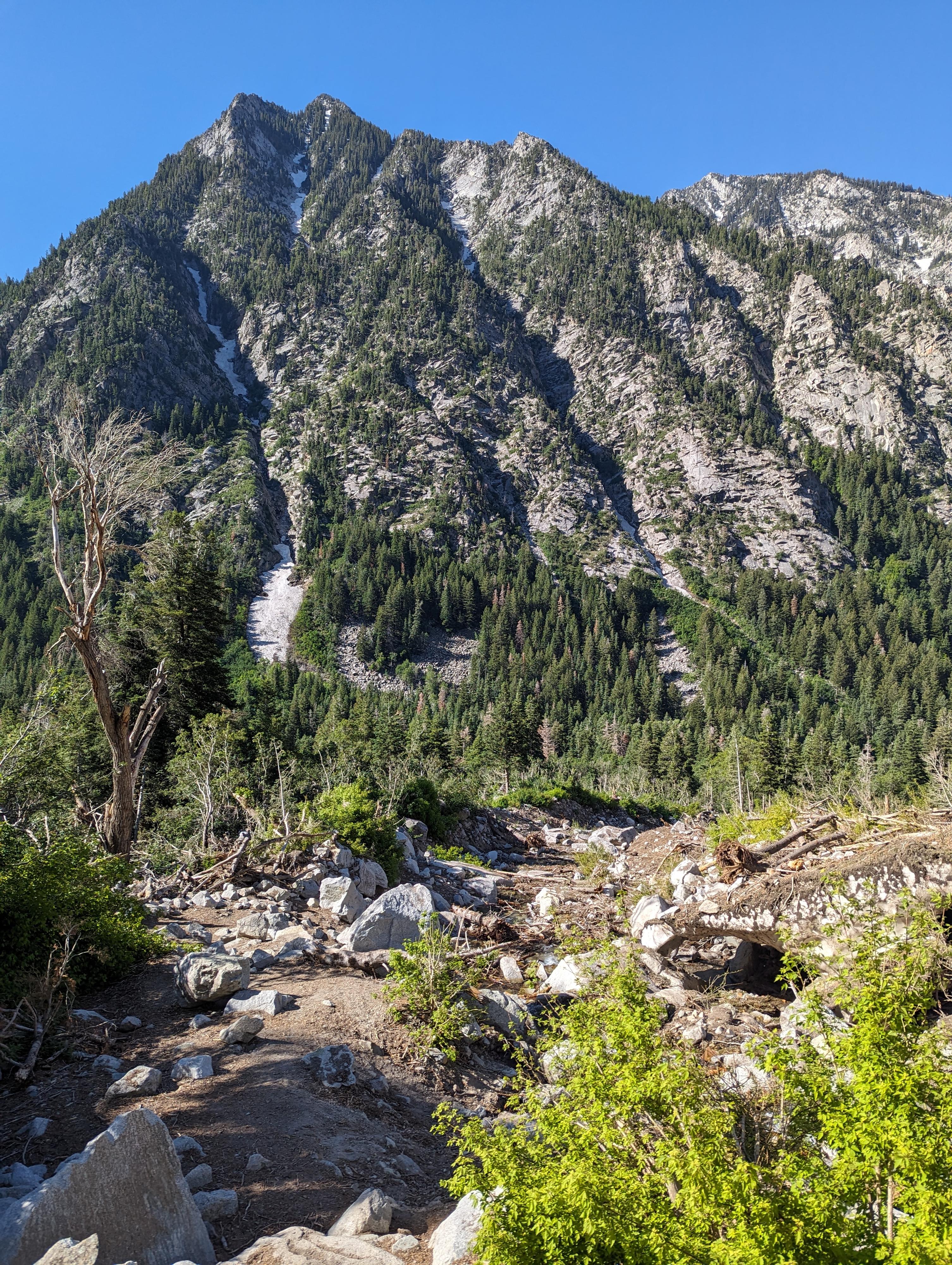 Broad views across the canyon. Avalanches in 2023 great opened up the views of the area.