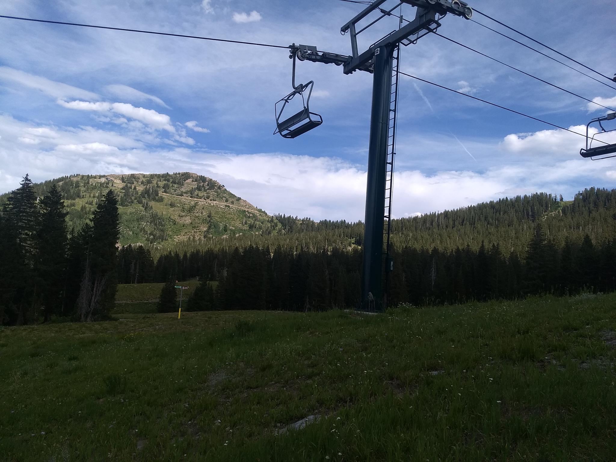 The trail meandering up the ski slope an entanglement of nature and development.