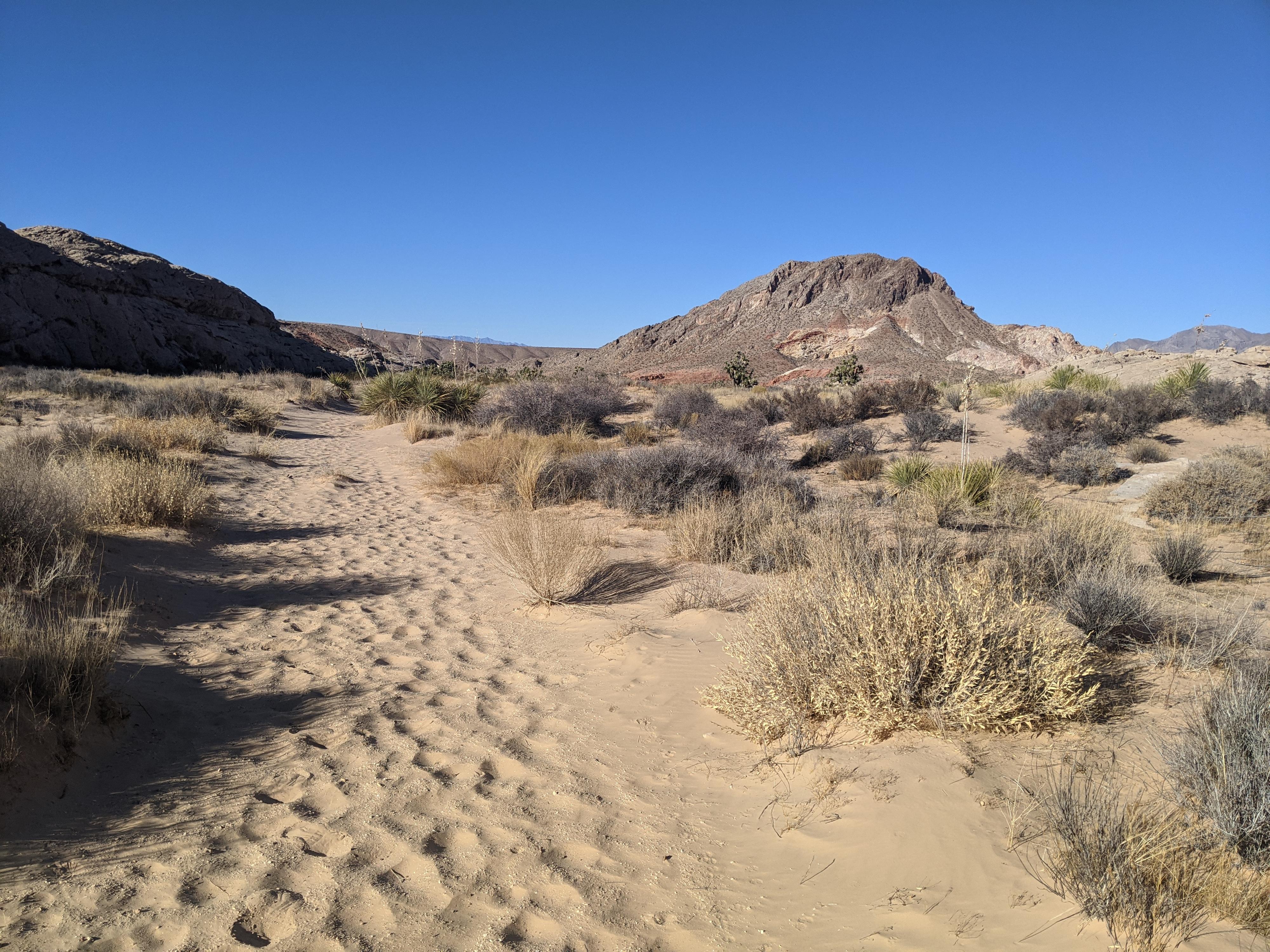 Sandy trail on the way back to the trailhead. Black Butte on the right.