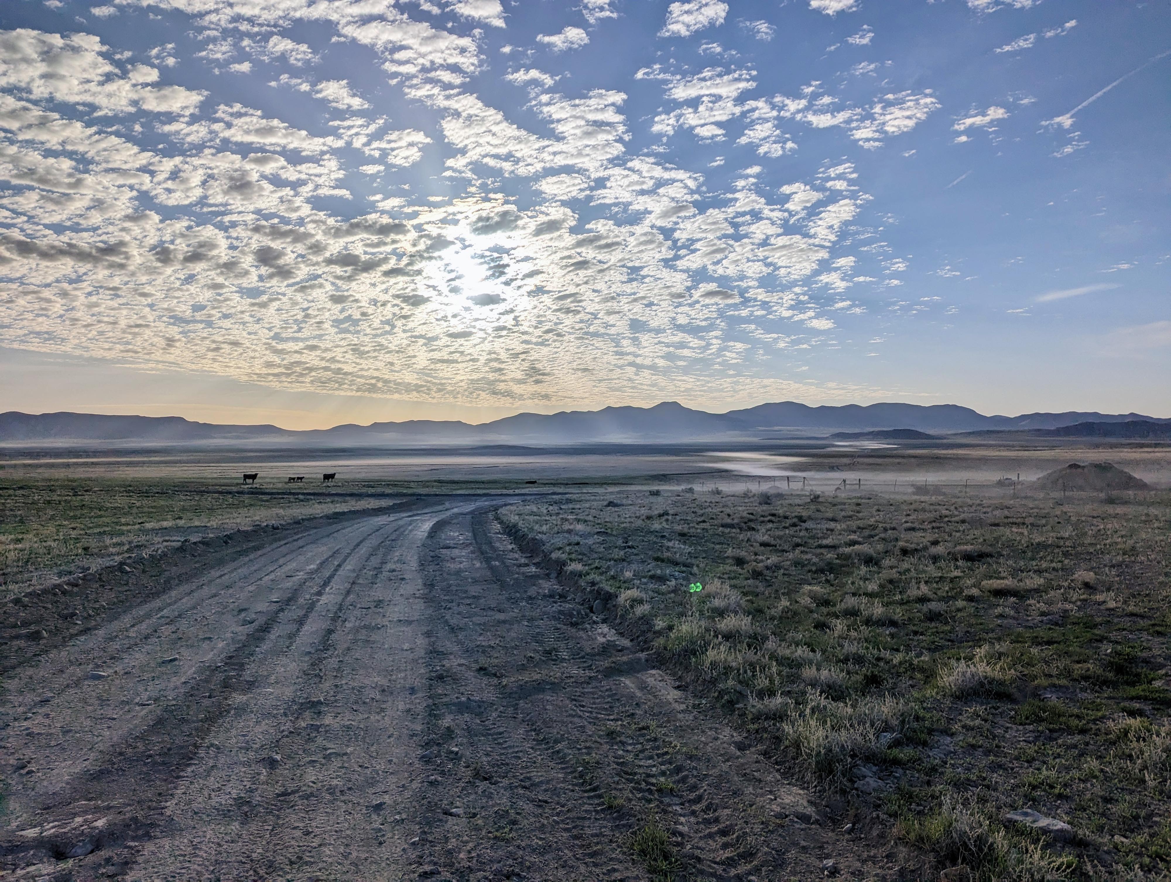 Looking back across the dusty Puddle Valley on the drive to the trailhead.