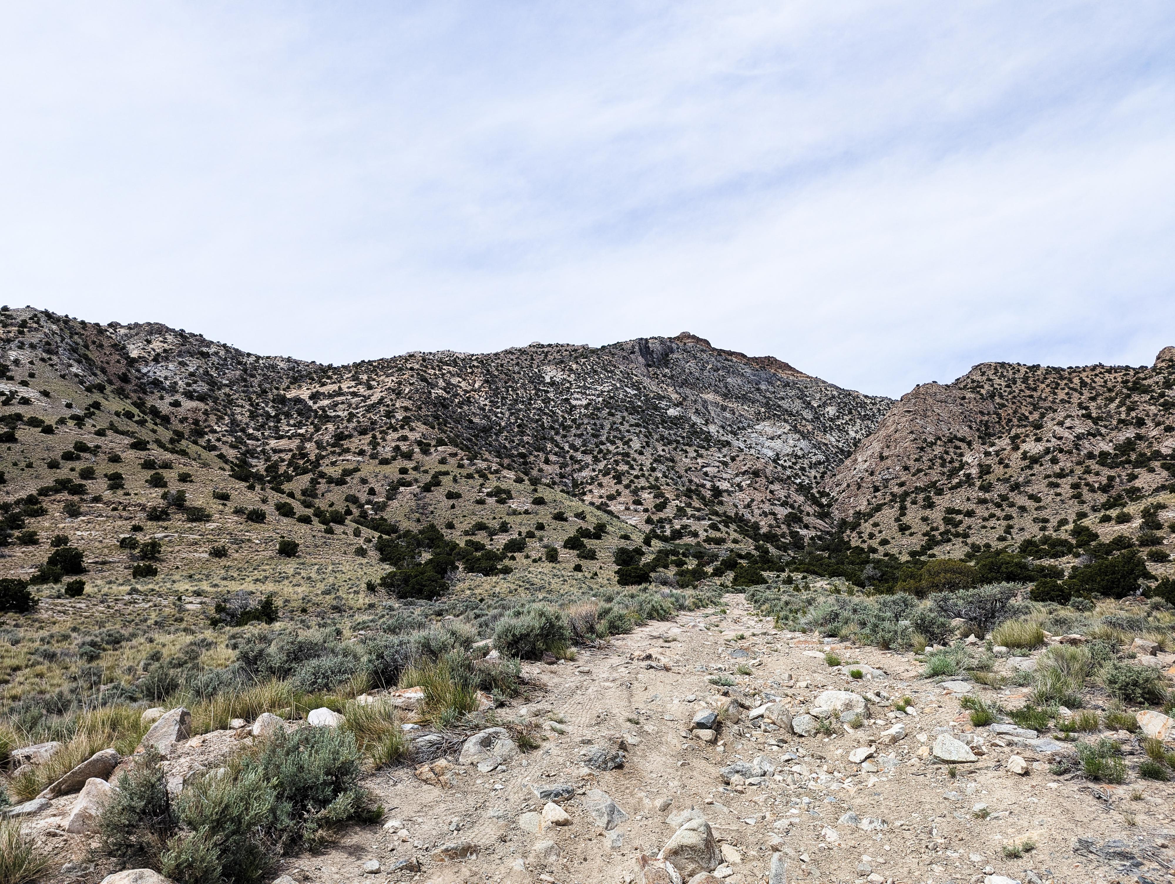 Desert Peak (the high point) while driving up Dells Canyon on the east side of the range.