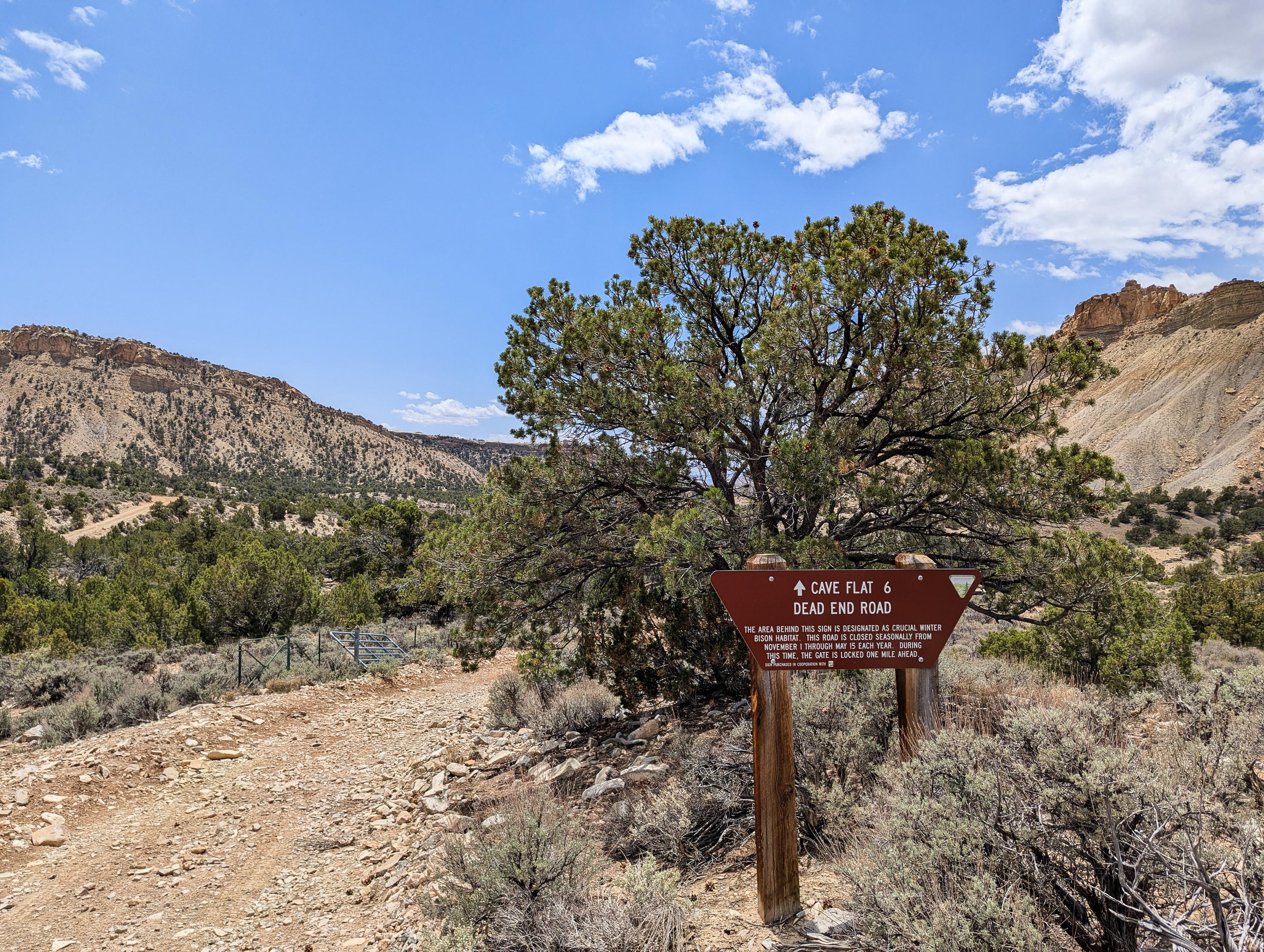 Sign at the junction to drive to Cave Flat
