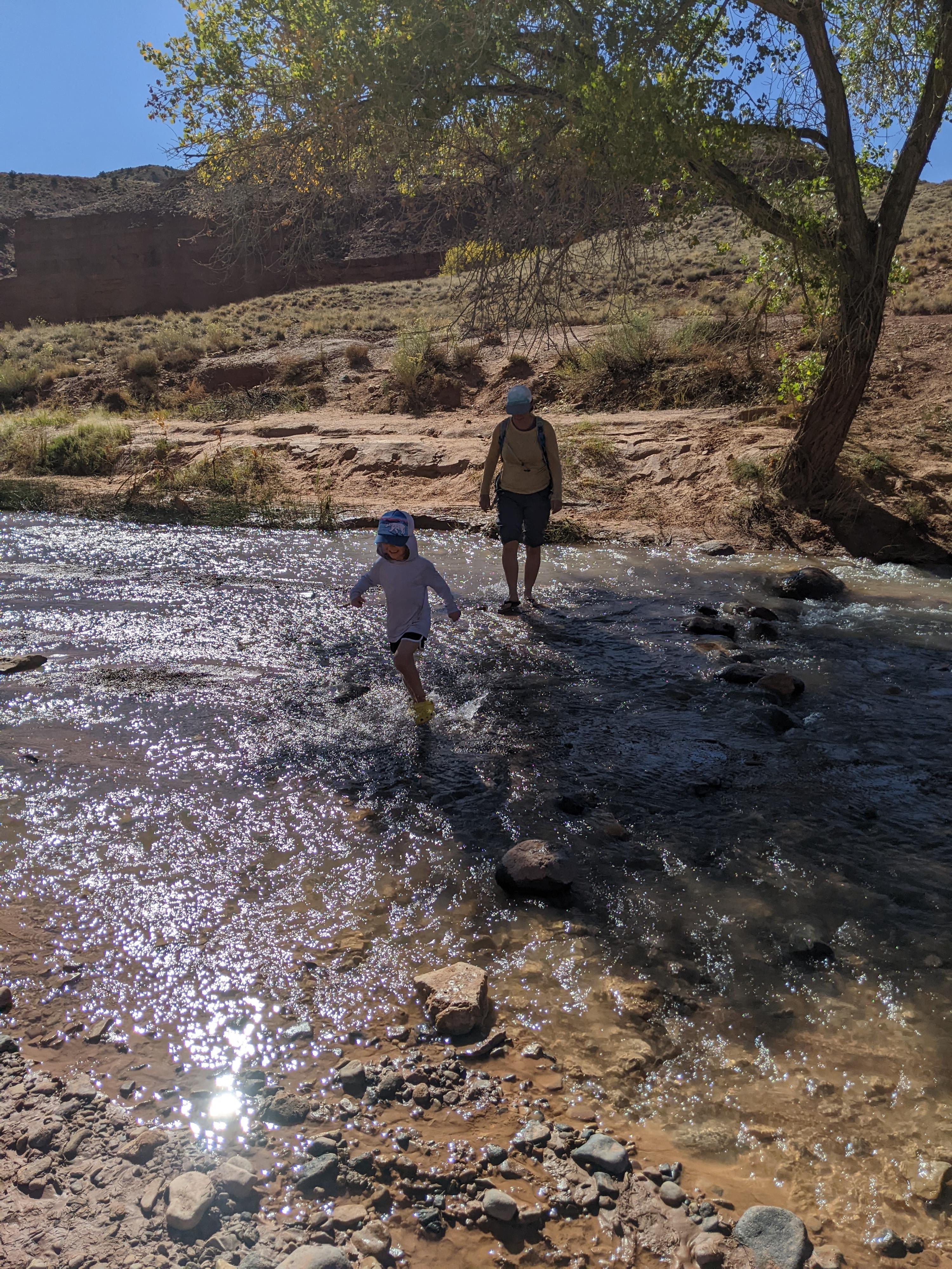 Splashing across Sulphur Creek on the way back.