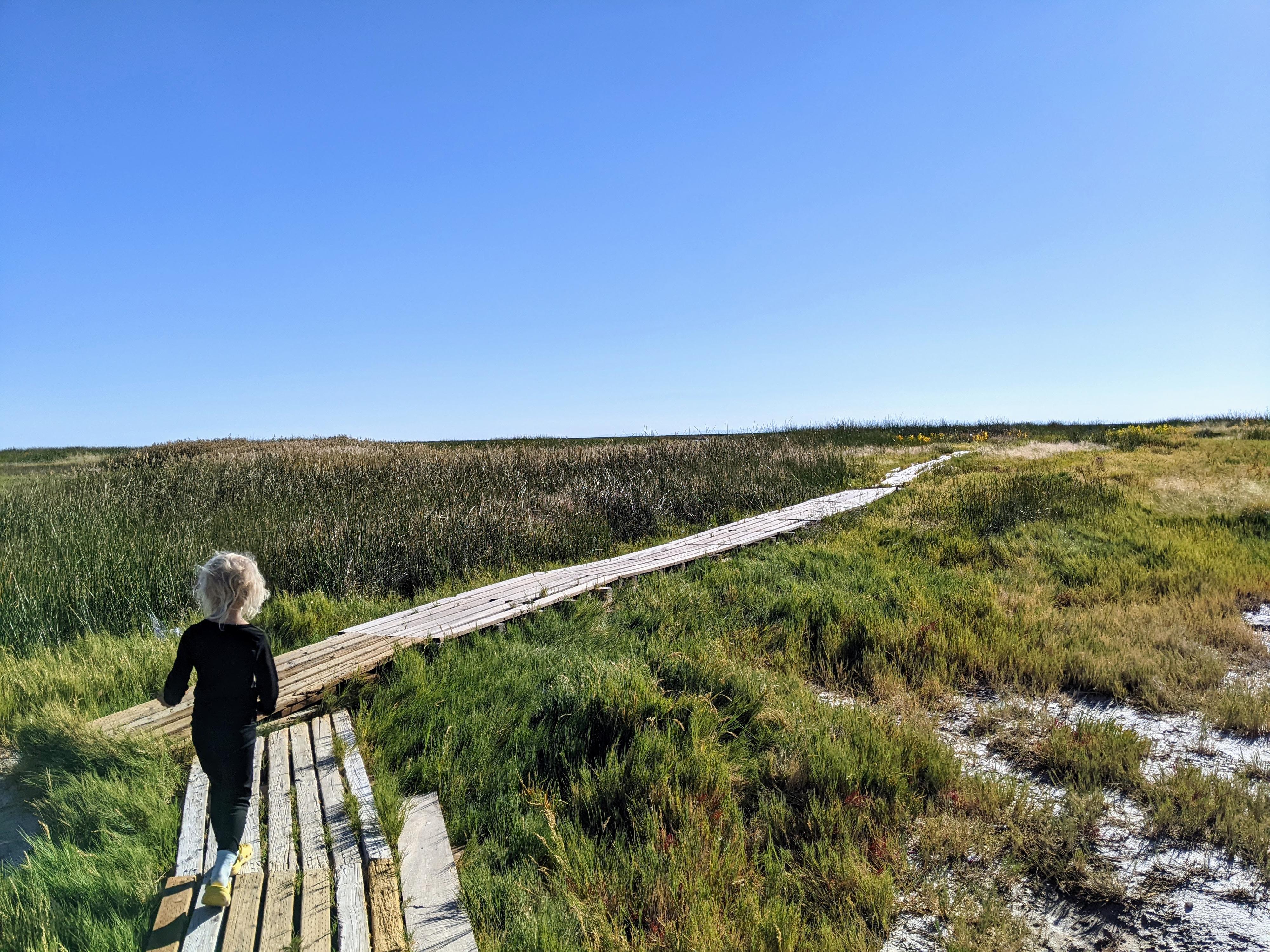 Heading out on the boardwalk to the lake.