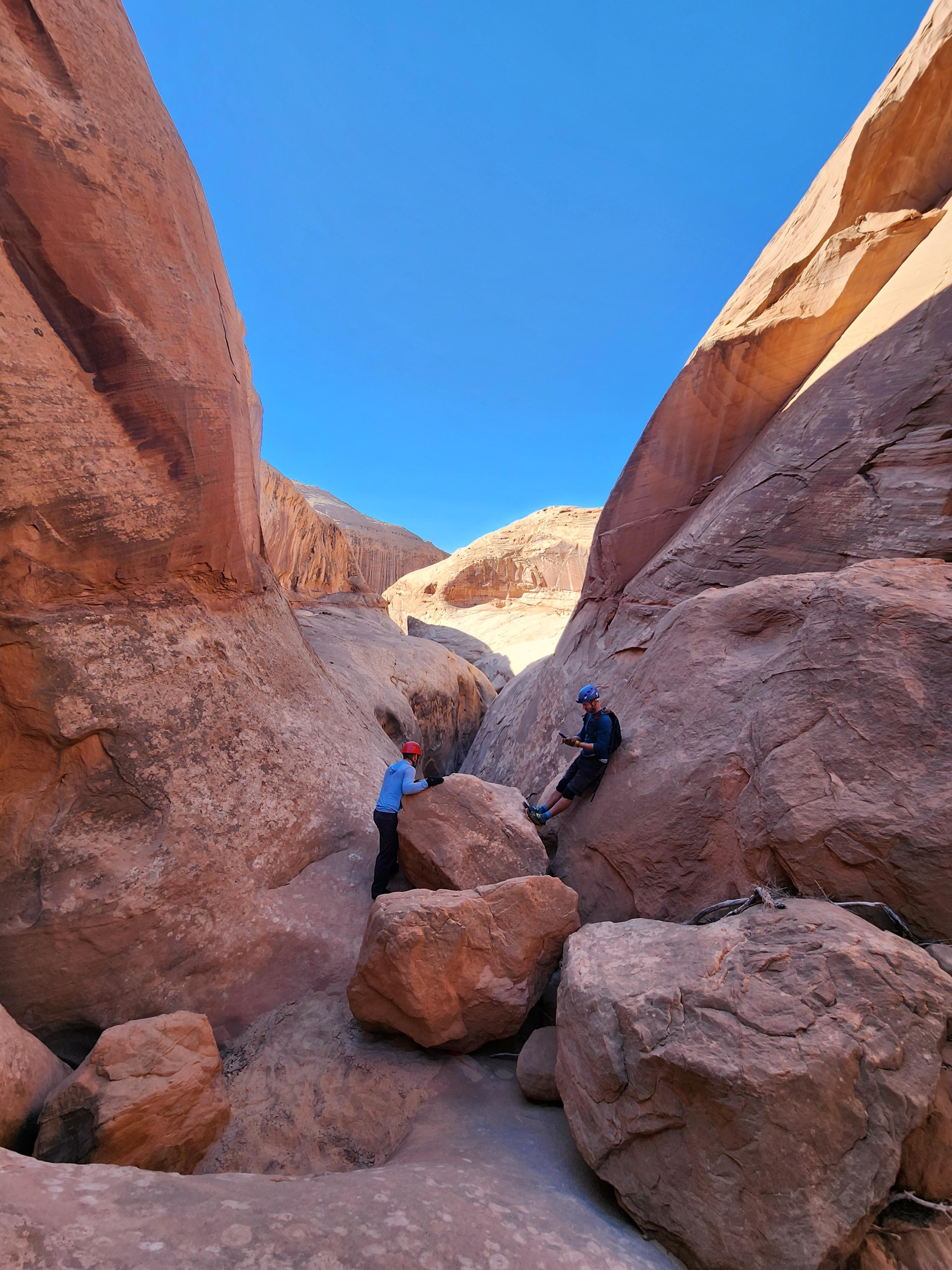 Boulders to downclimb before crux.