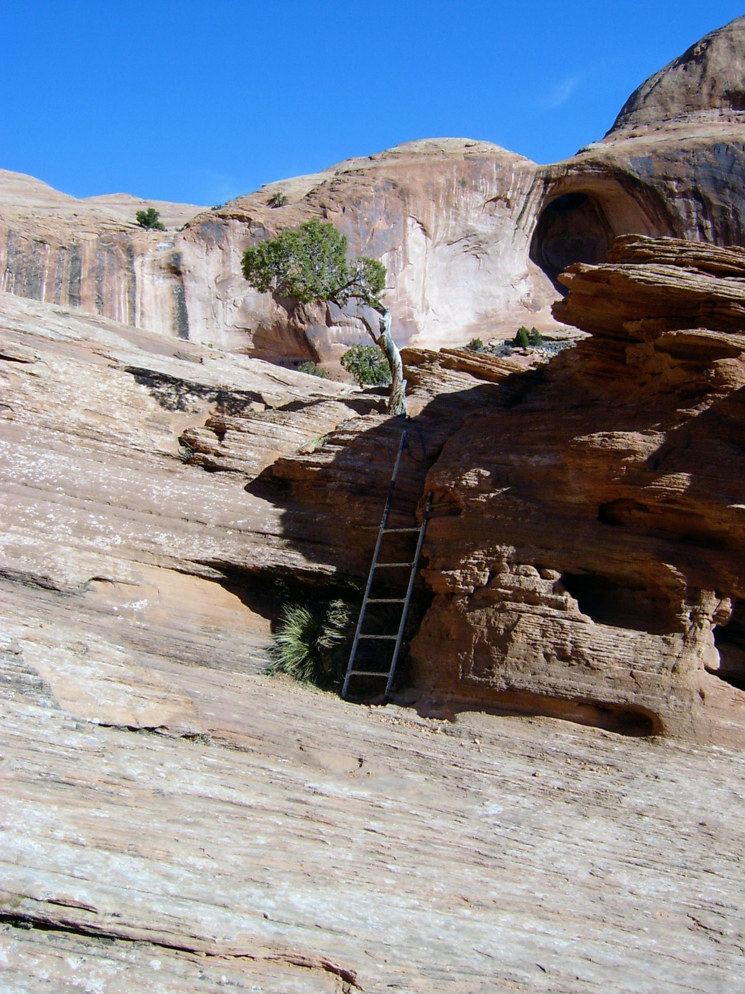 A ladder in the trail en route to Corona Arch