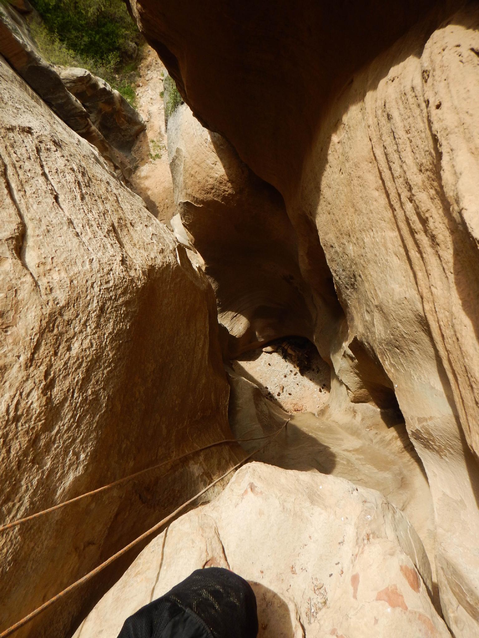 Looking down the two stage rappel in Jolley Gulch.