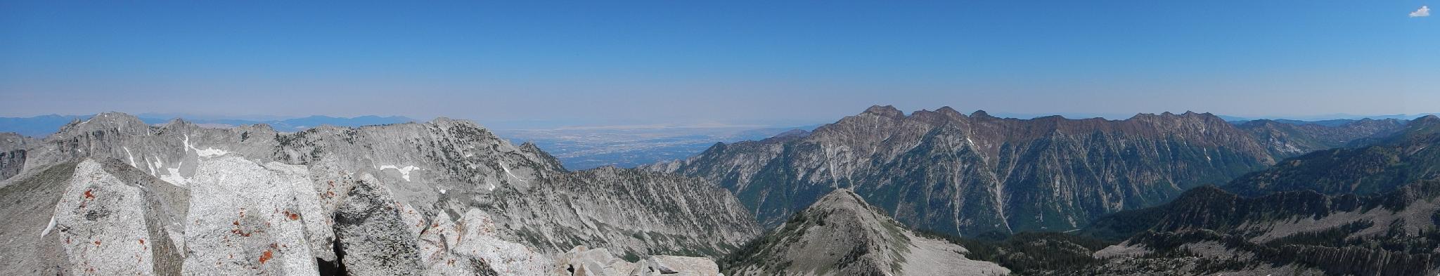 West andnorth panorama - Lone Peak, SLC, Twin Peaks, and Dromedary.