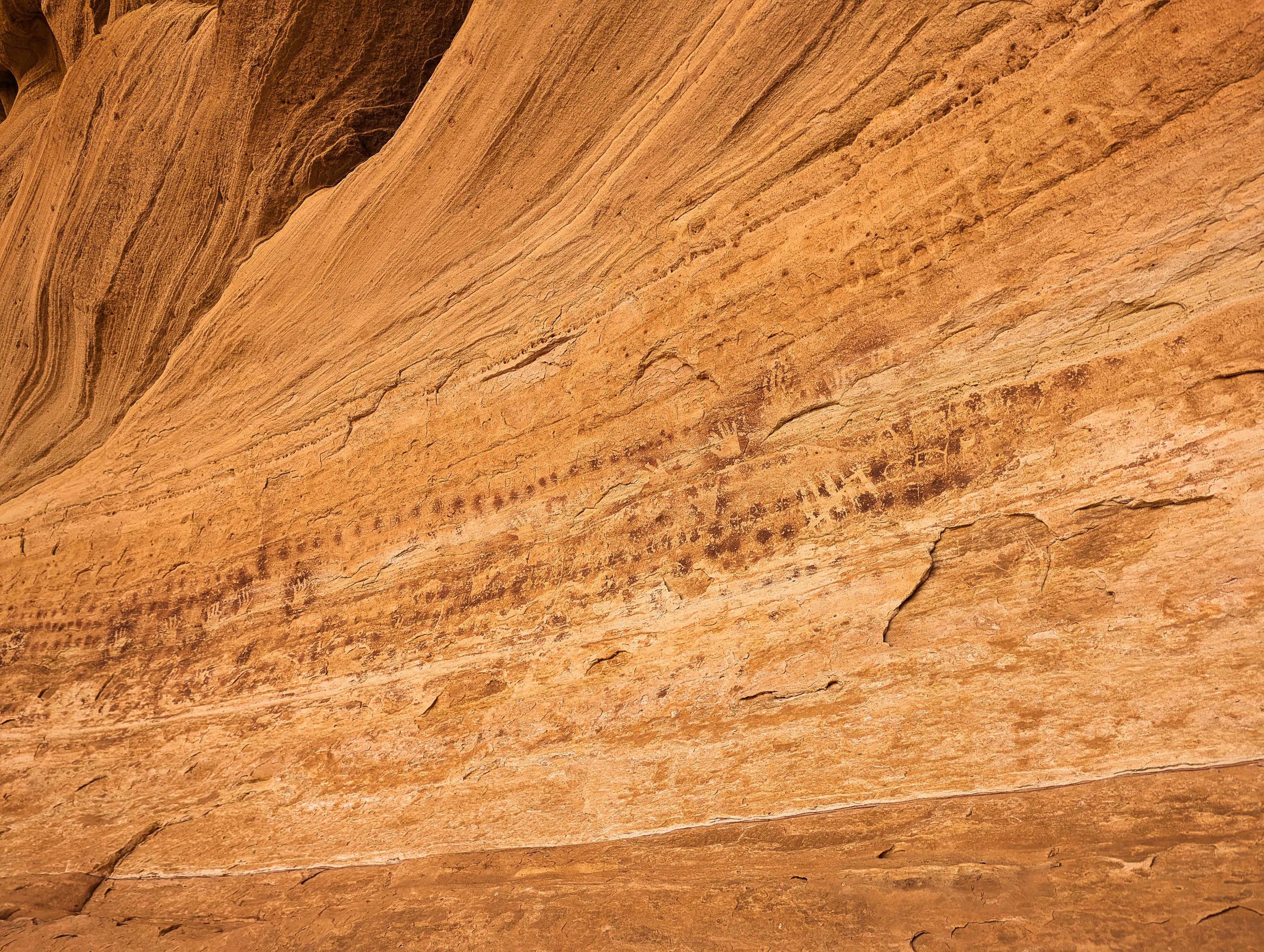 Some of the hand prints and pictographs at the site.