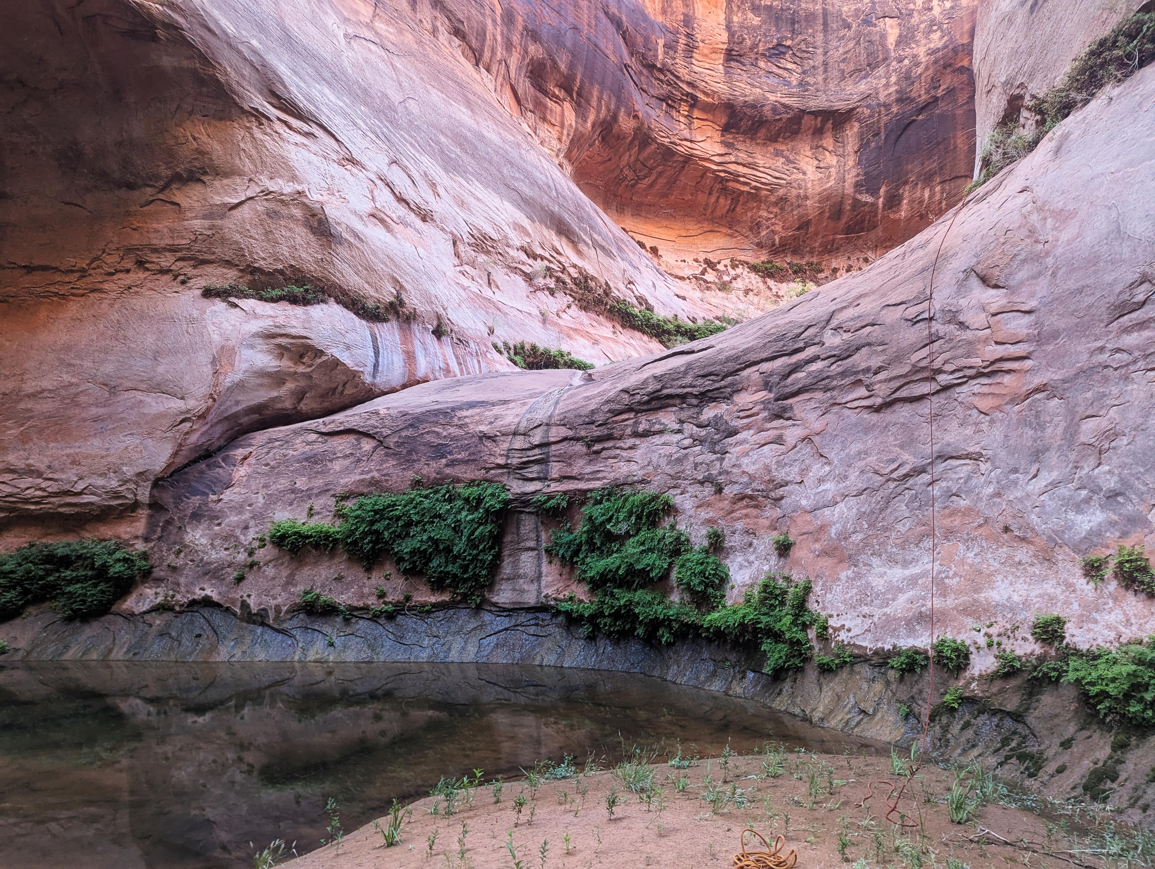 Rappel 2. You can just see a rope on the right in this picture and some carved steps on the left.