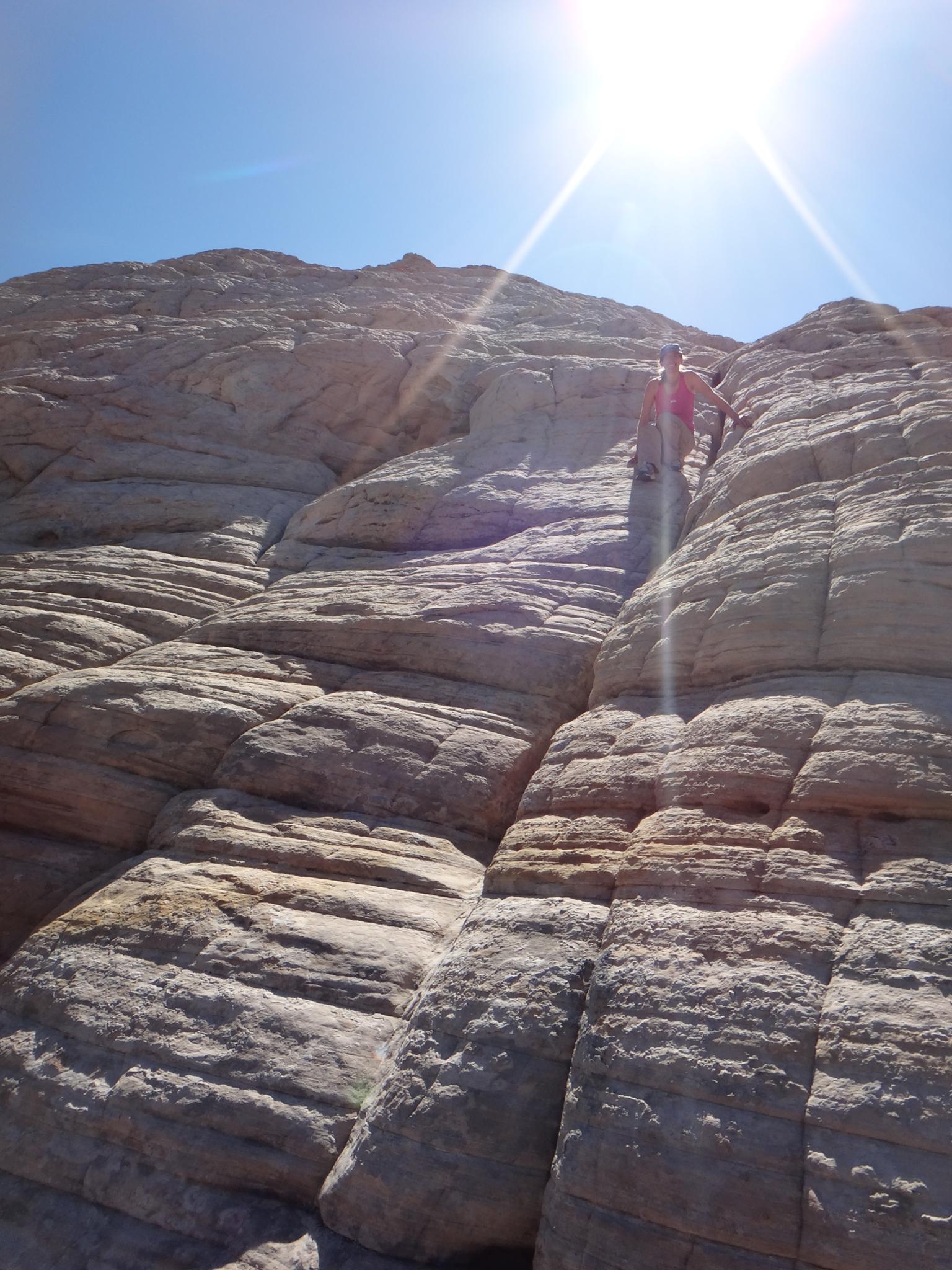 Down climbing from the summit.