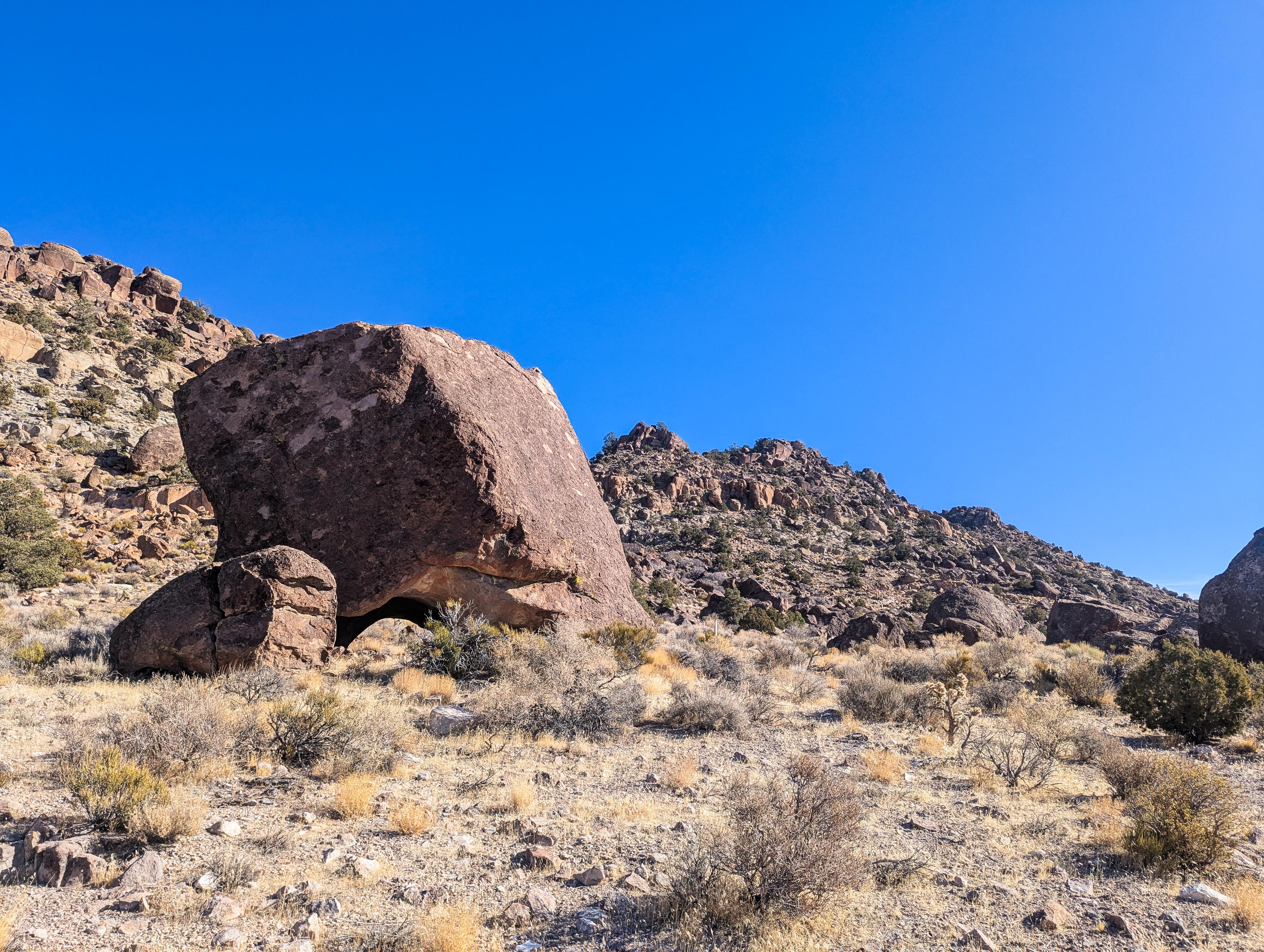 The house size boulder with pictographs under it.