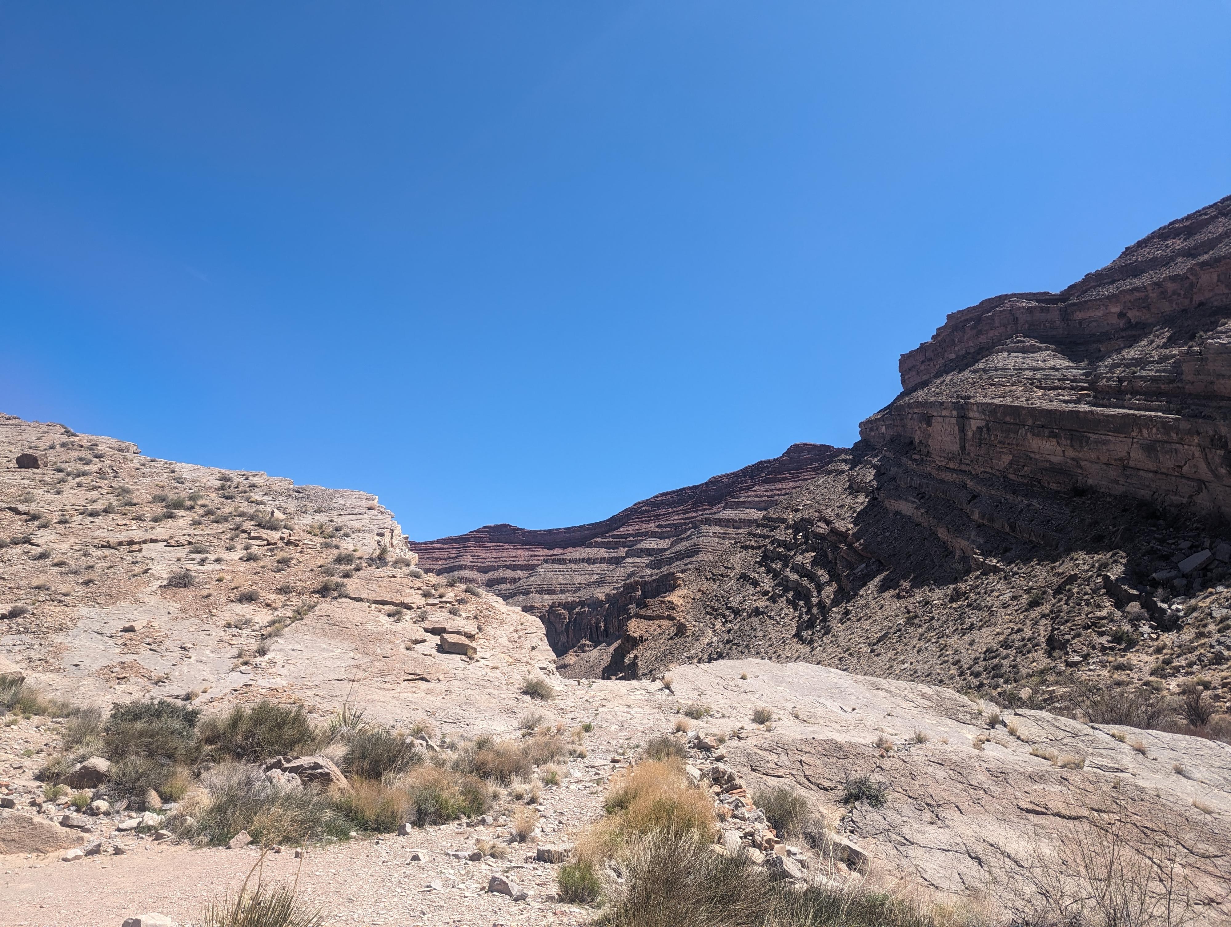 The old road cut through a rock layer. Easy walking!