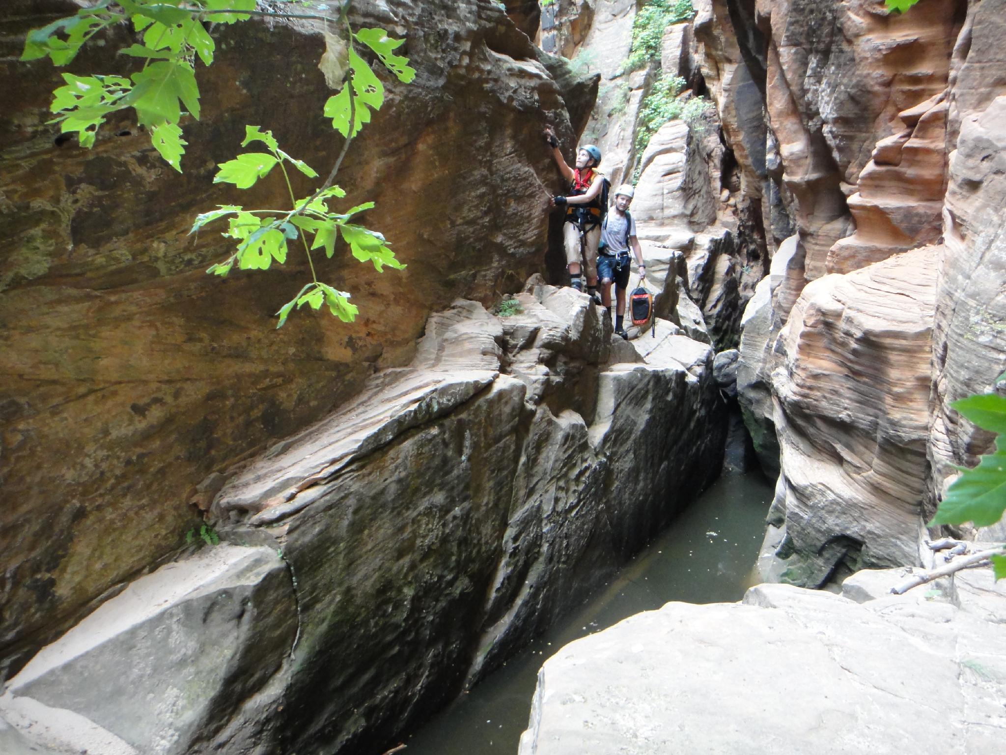 Trying to avoid getting wet in Behunin (Photo by mfallentine)