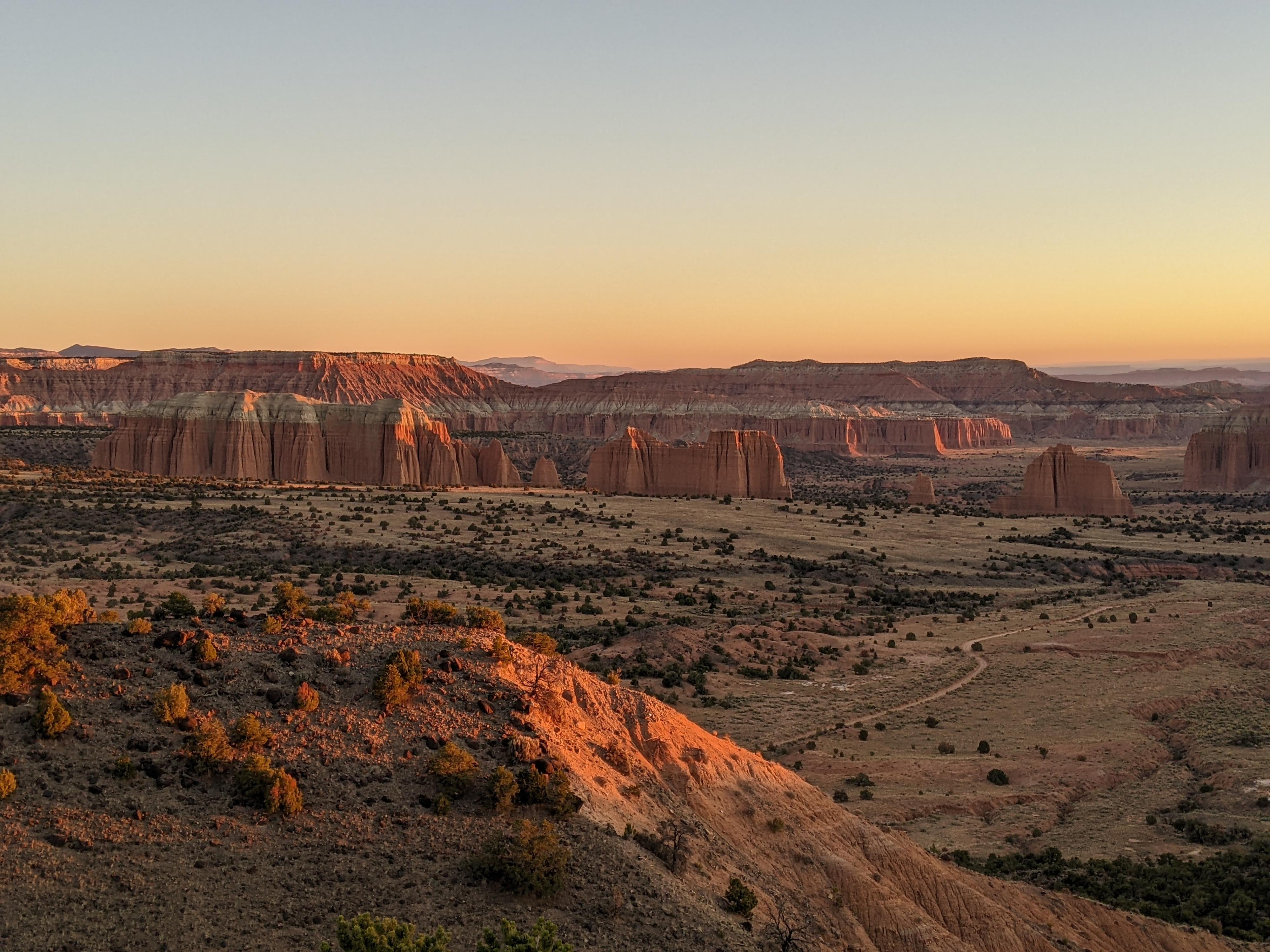 Sunrise over Cathedral Valley from the Campground.