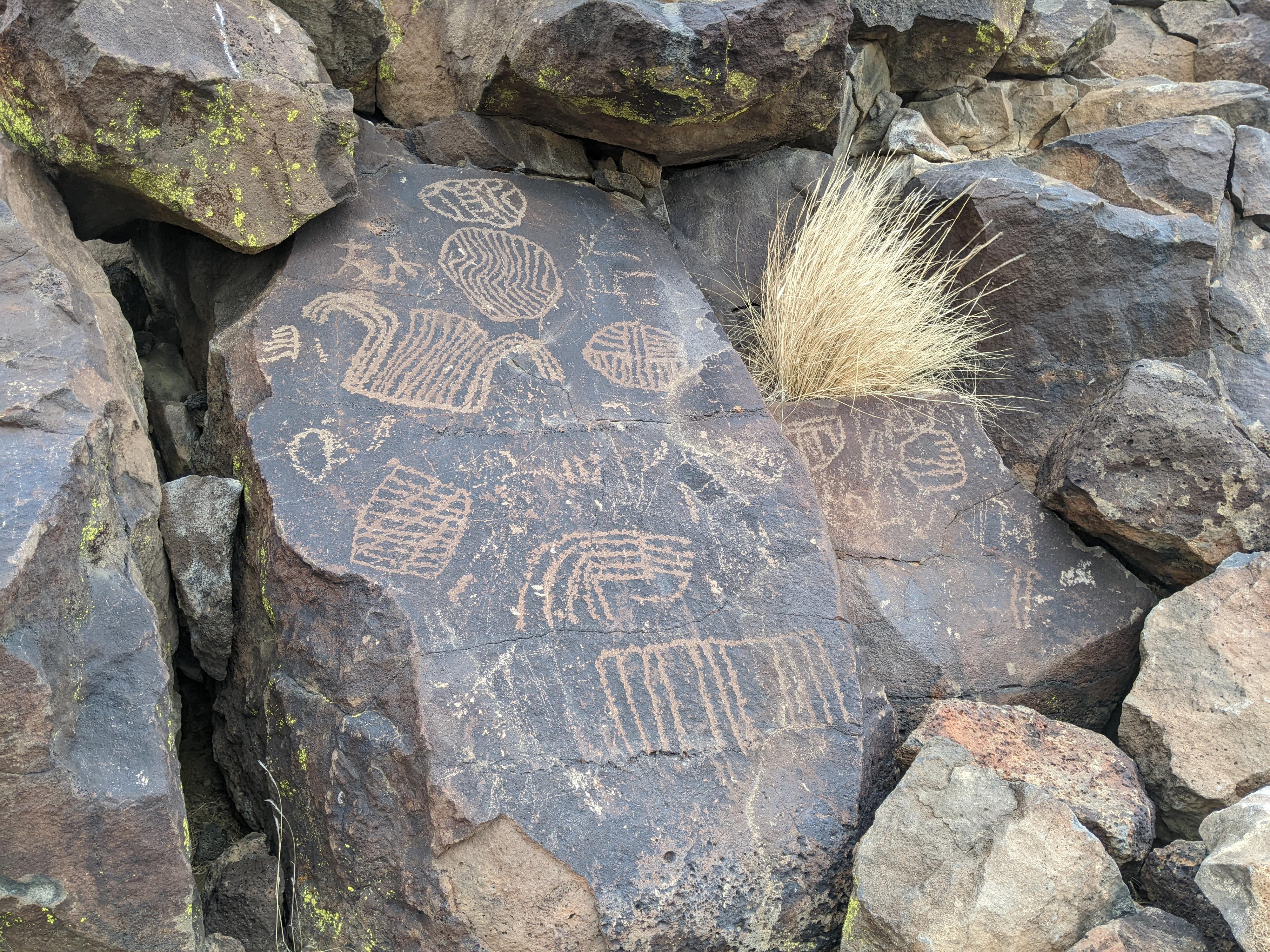 Rock art near where the road divides.
