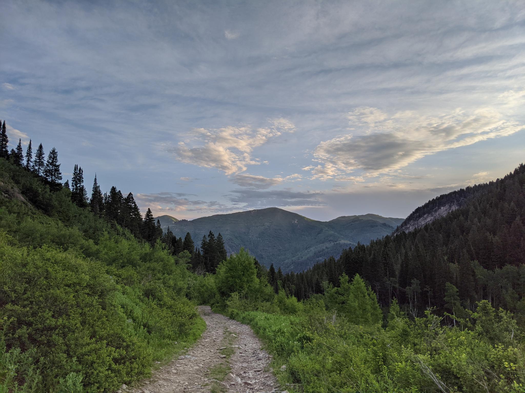 The return hike, looking at the north ridgeline of Big Cottonwood.