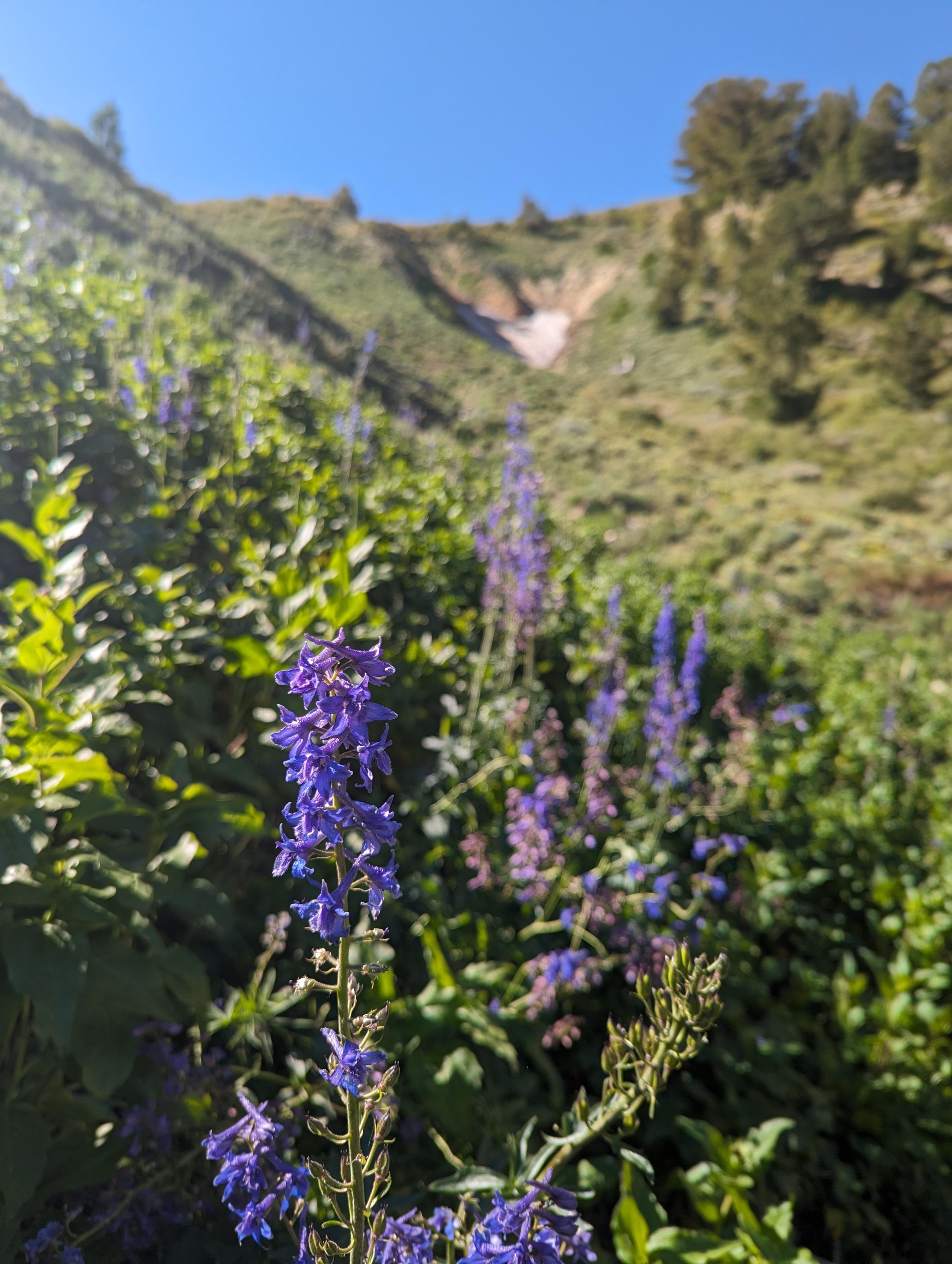 Wildflowers and a patch of snow in mid-September near North Willow Lake.