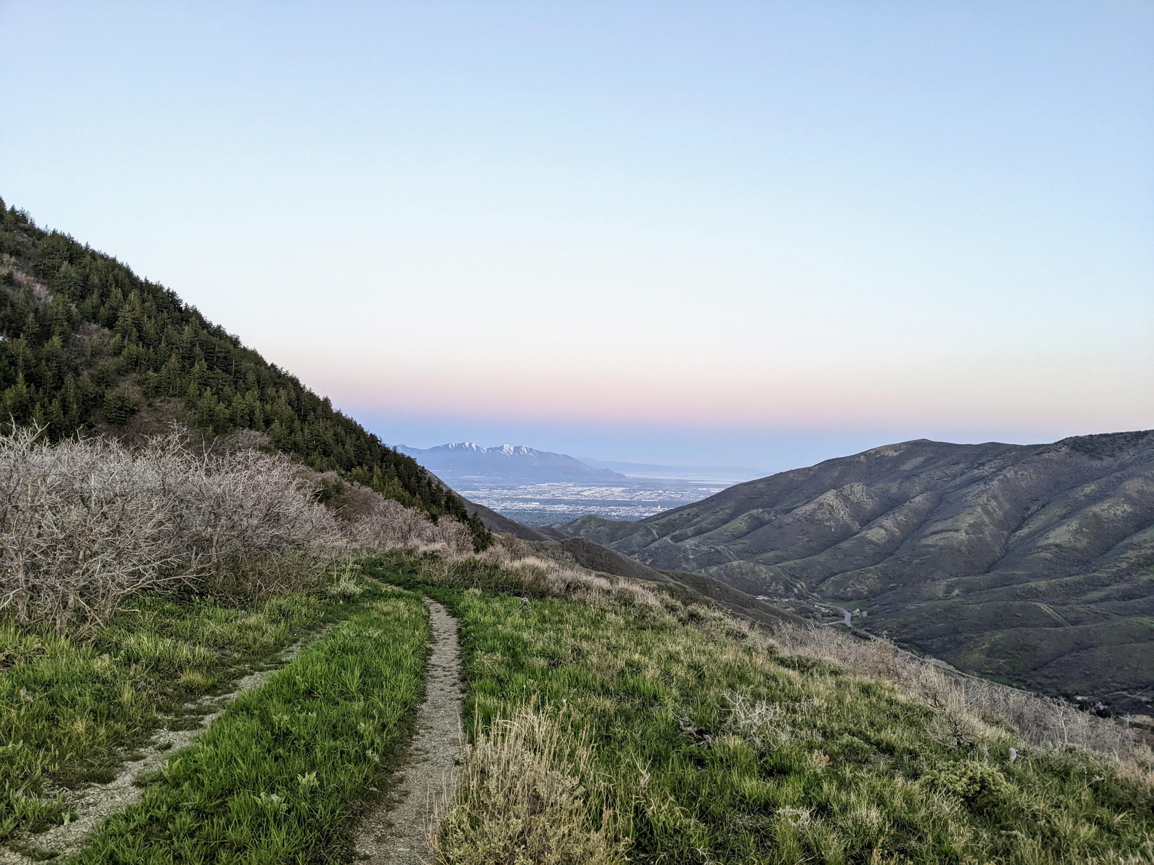 Emigration Canyon and Salt Lake Valley from the two-track heading to Dale BM