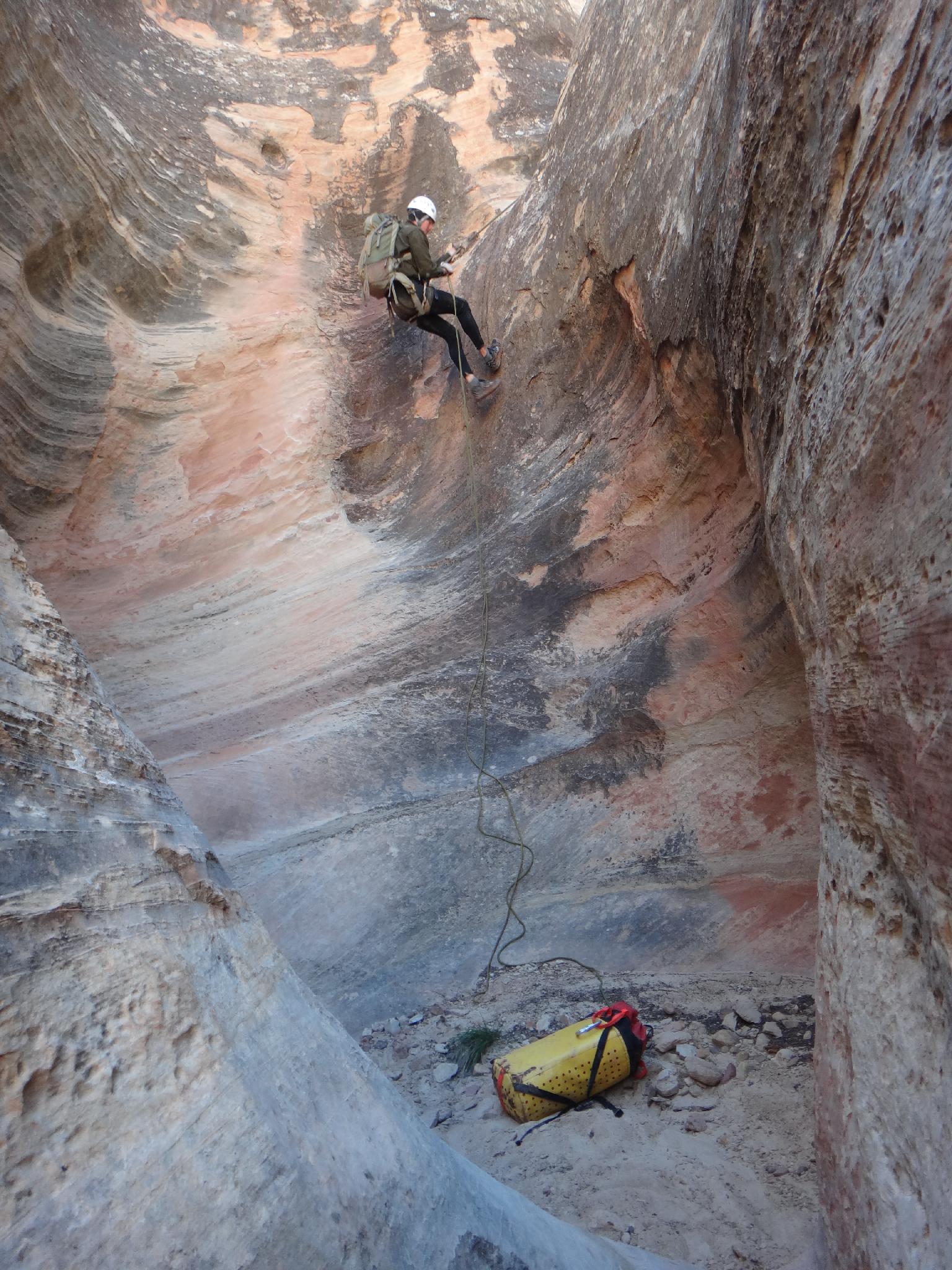 Rappel before the big rappel into Timpie
