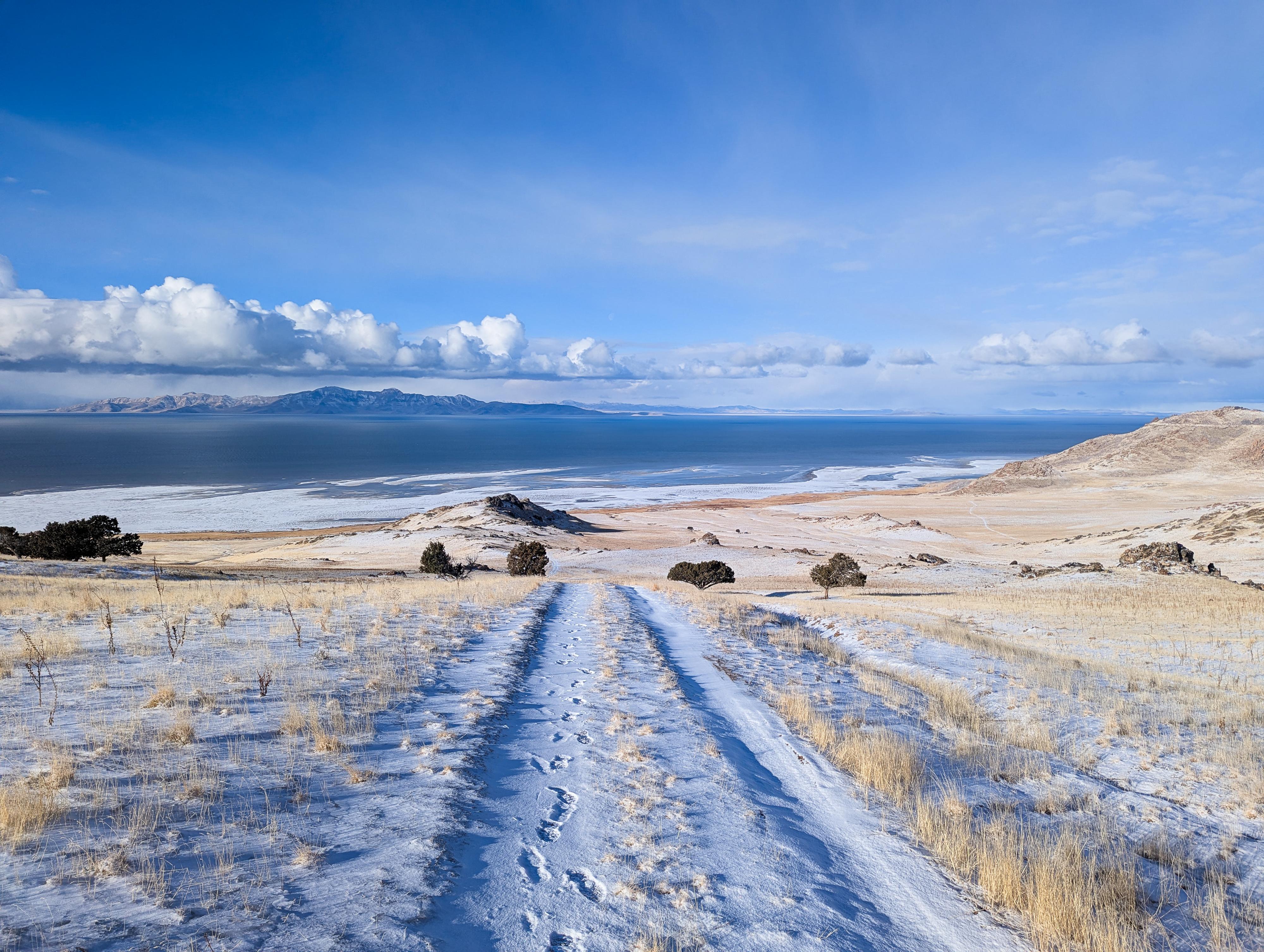 Heading down from the ridge with expansive views of the Great Salt Lake and beyond.