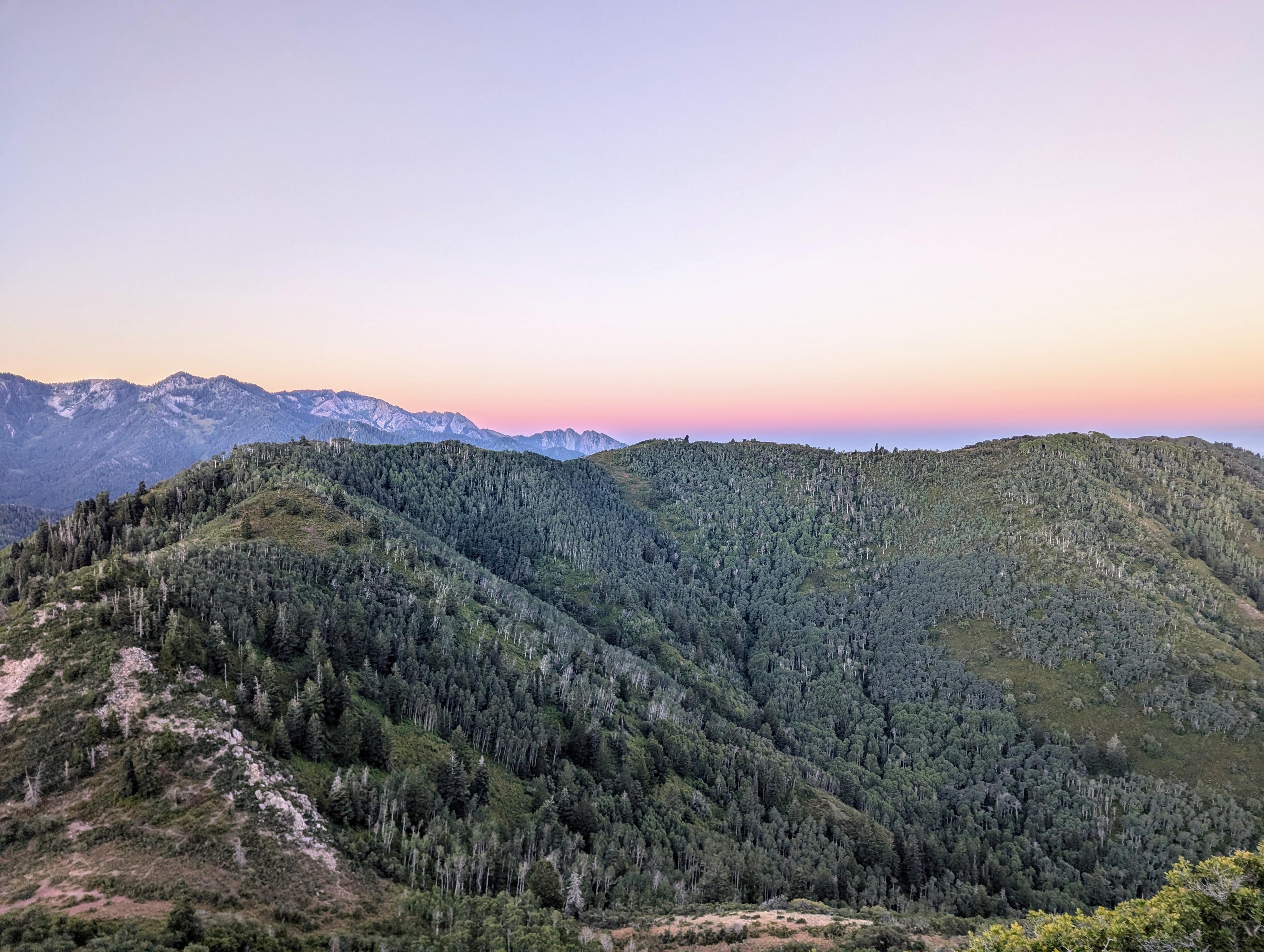 Millcreek Ridge heading west near sunrise coming down from the summit.
