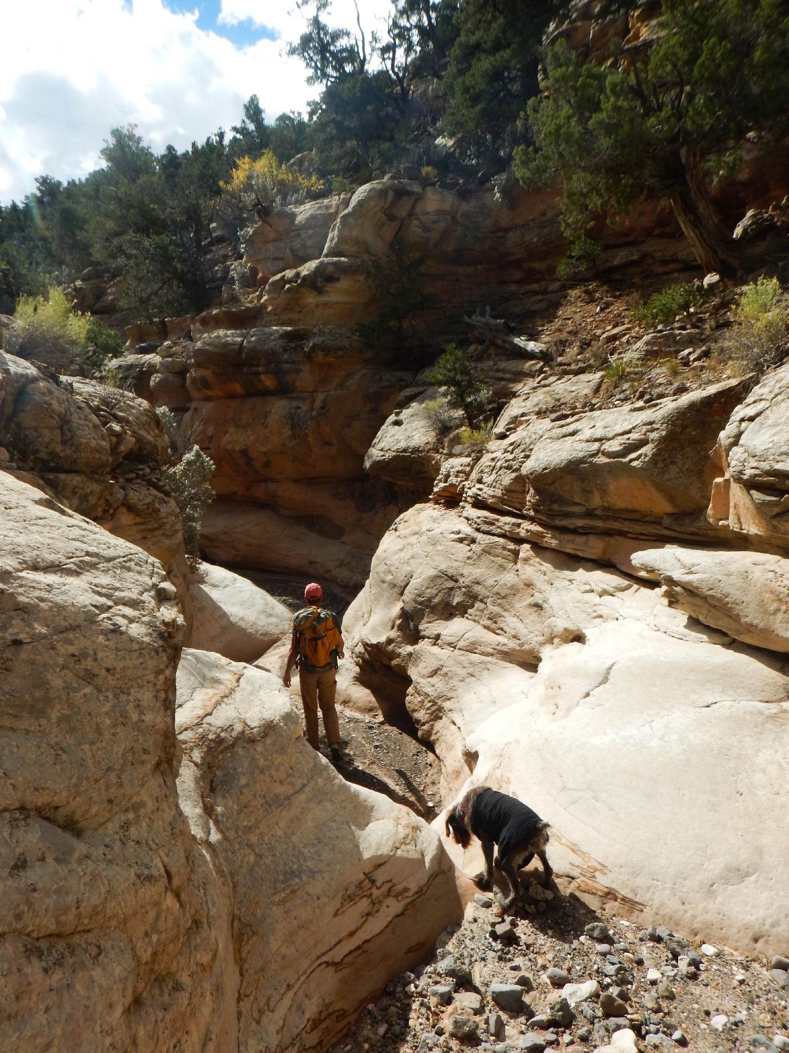 Abby pondering a small drop on the way to Watson Canyon