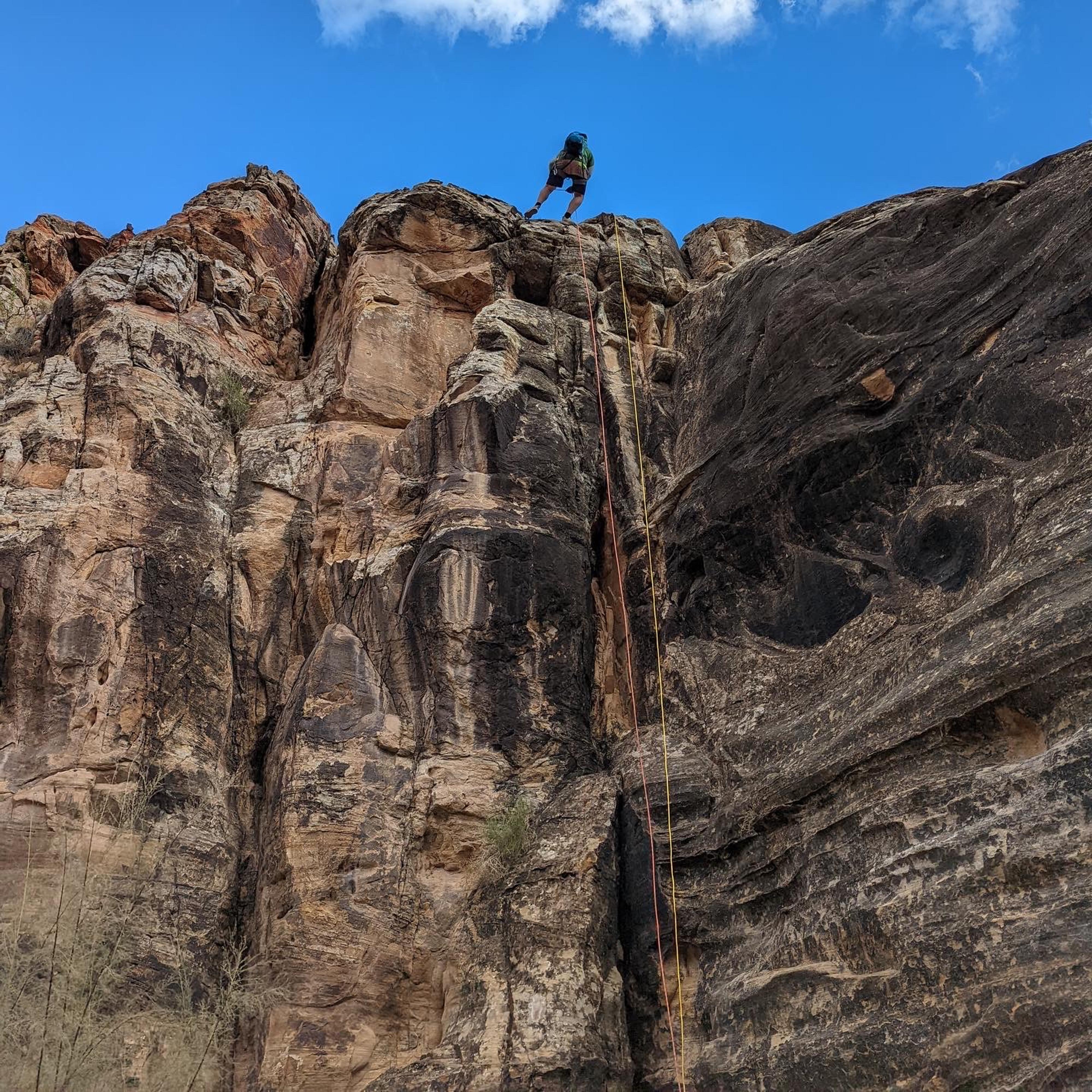 Last rappel, two different tree anchor options and a small arch anchor option