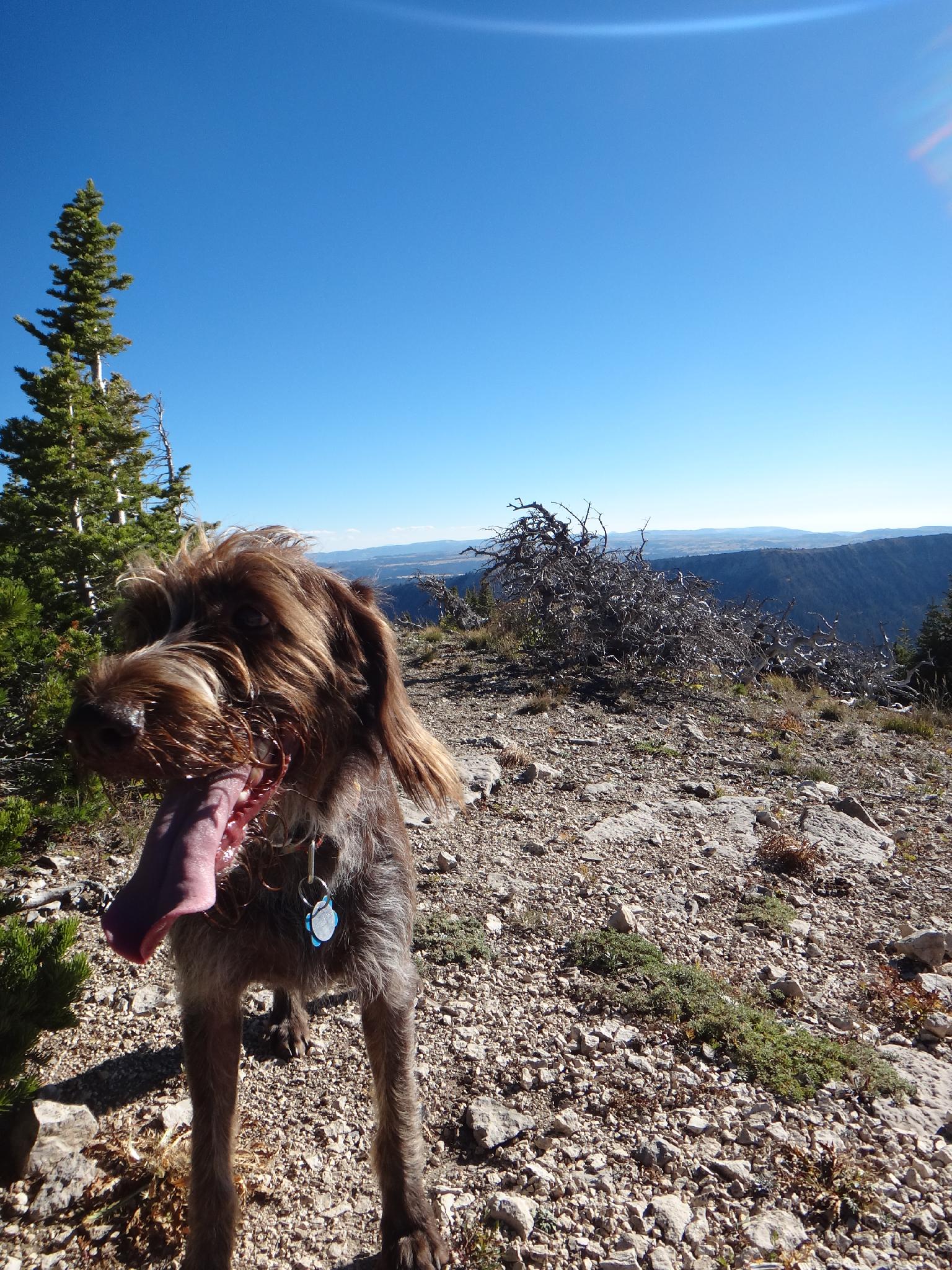 Lucy happy to summit yet another peak.