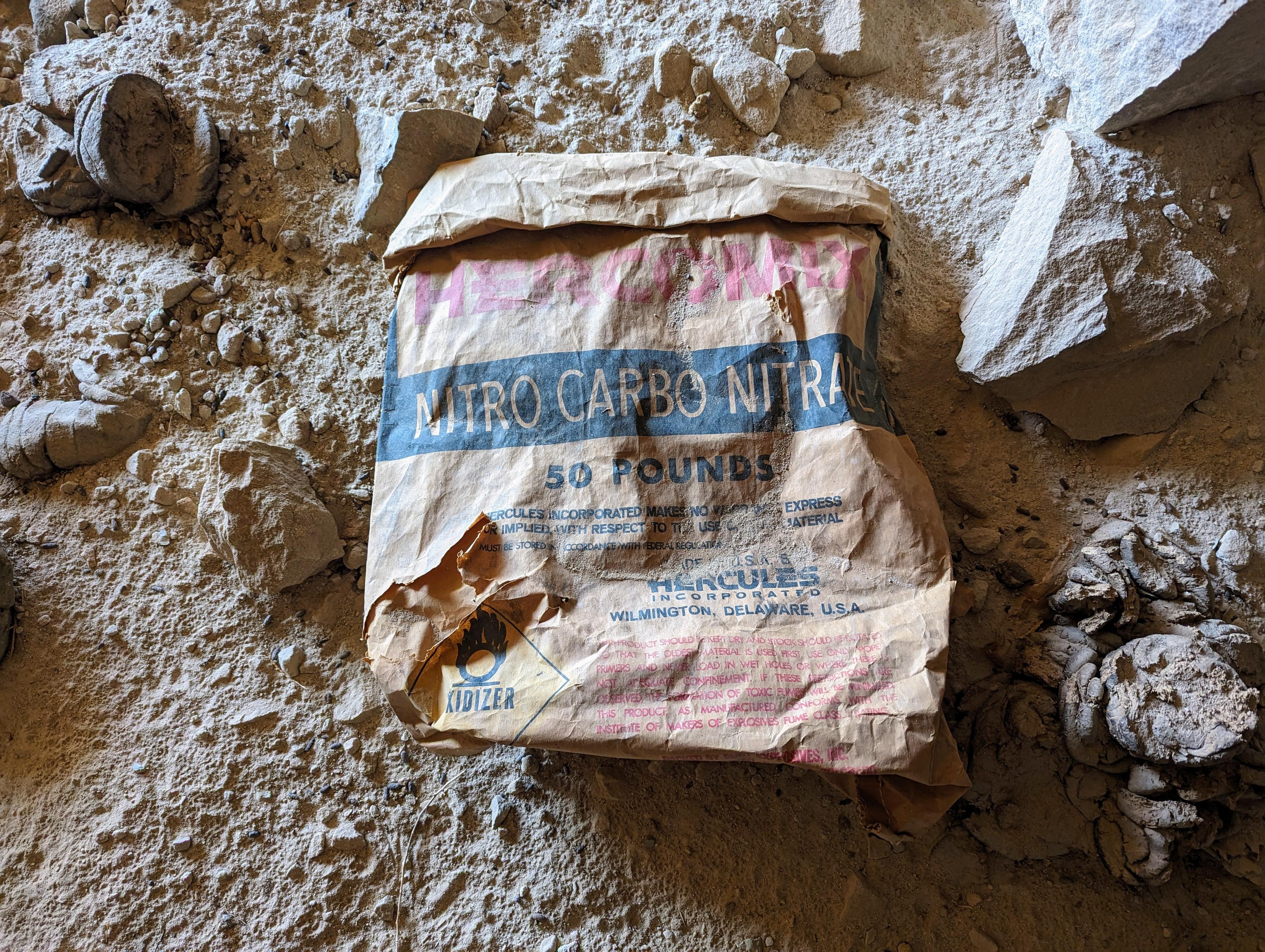 I assume a relic of the old blasting powder used at the mine.
