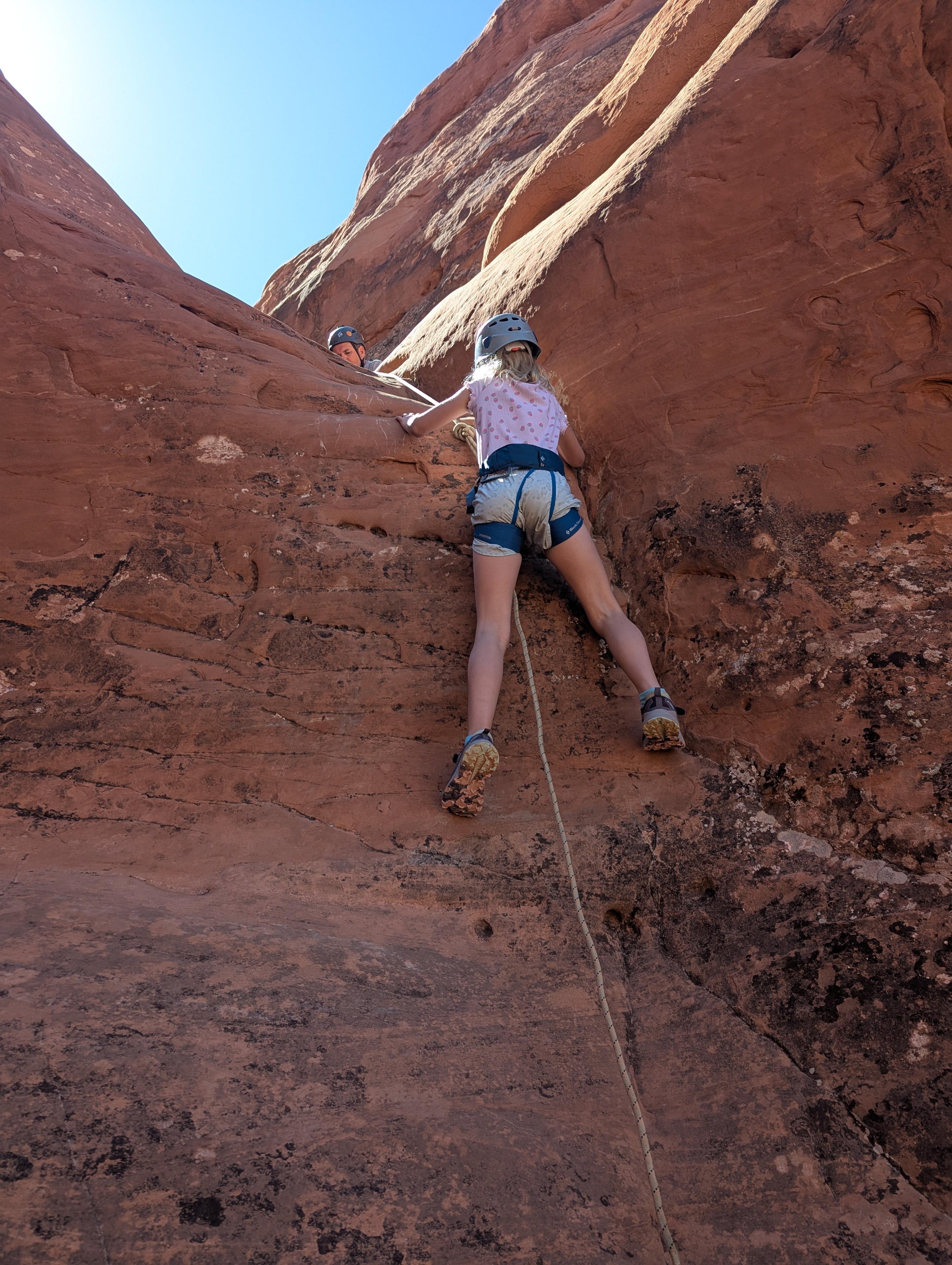 Crux climb right before the downclimb to the rappel. I went left and traversed over.