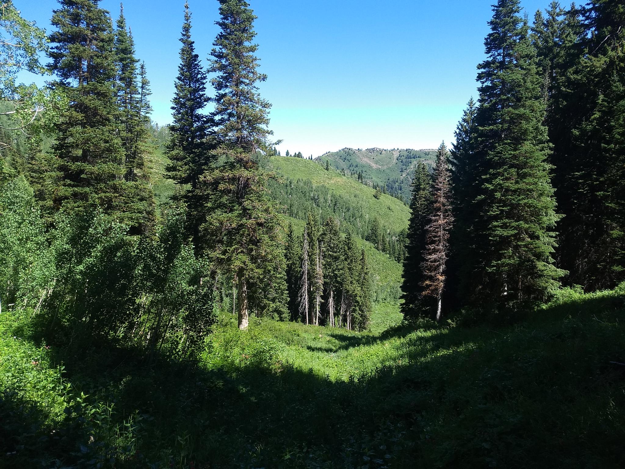Looking down Solider Fork from the start of the head wall climb to the ridge.