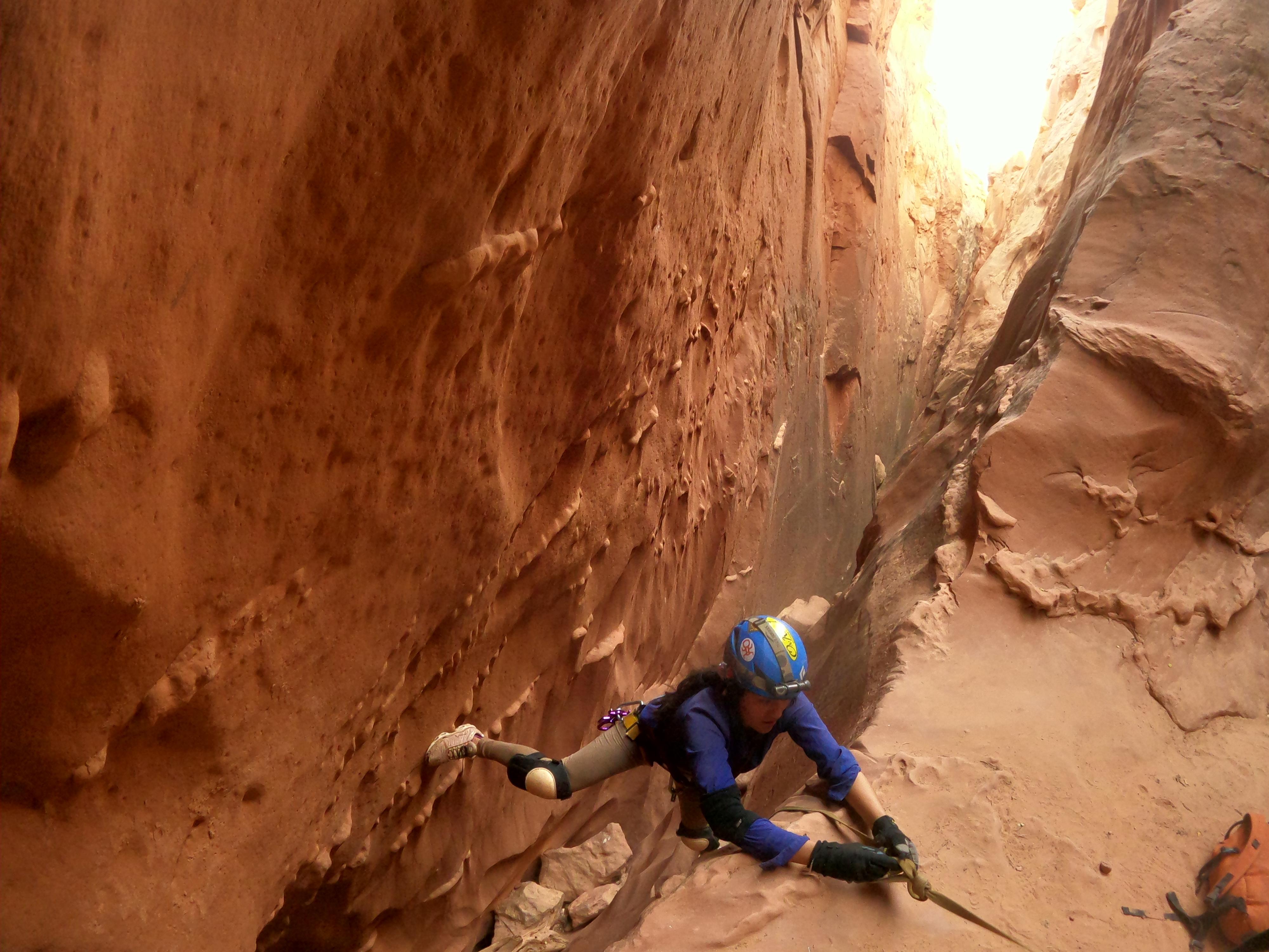The crux of the upclimb. Webbing left in place, not too bad.