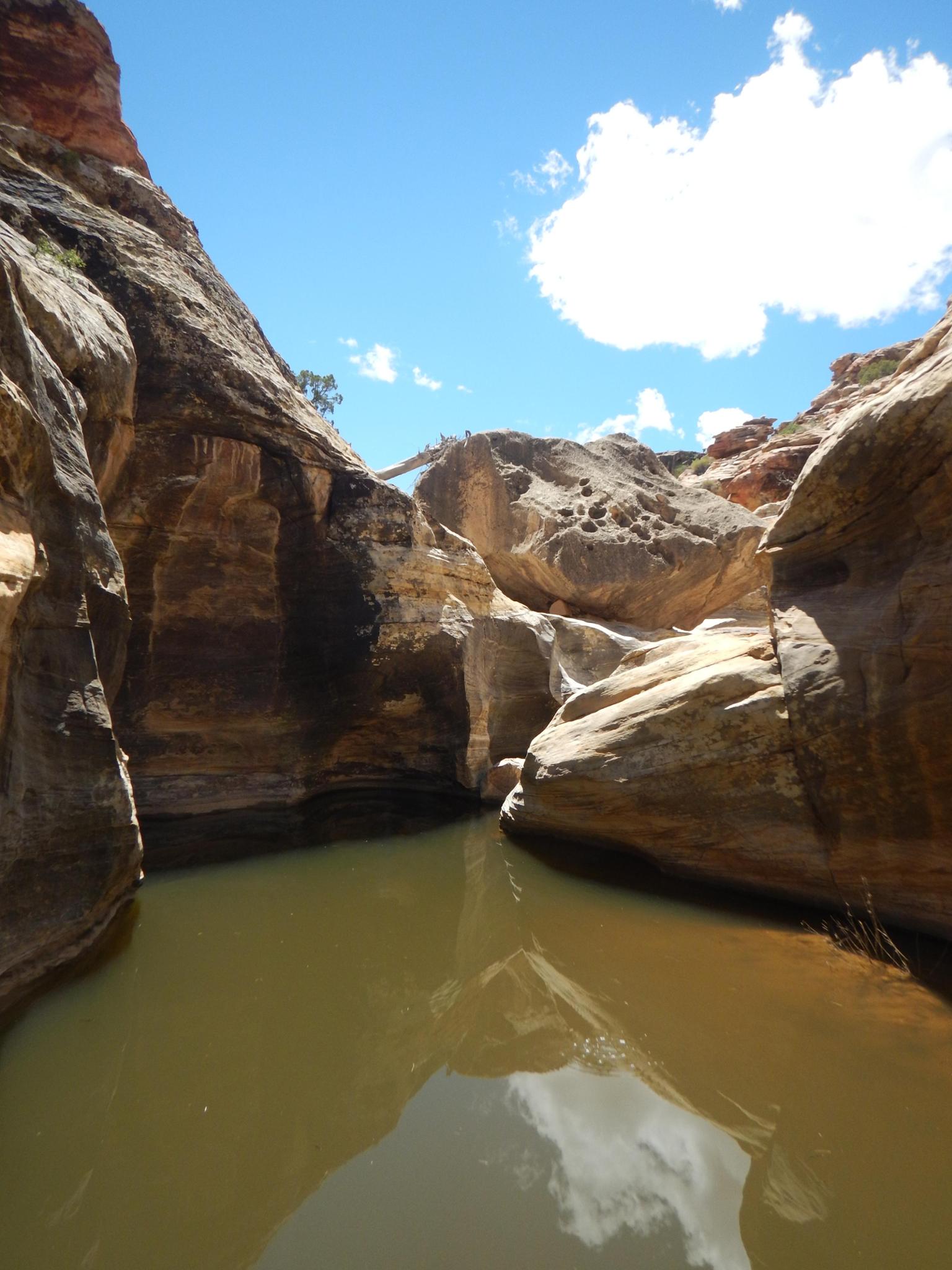 Pool and beautiful boulder in the canyon