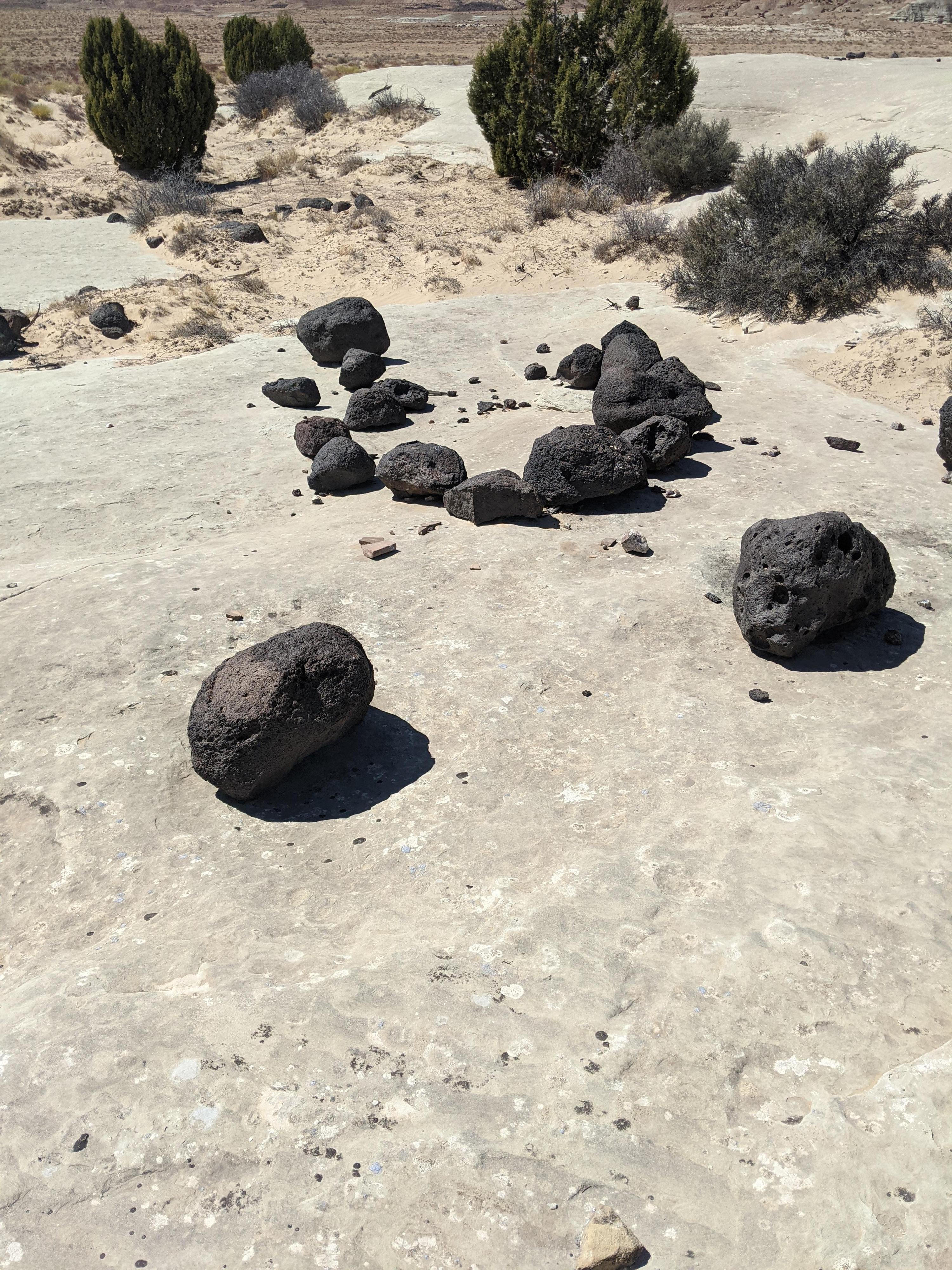 One of many rock rings and shapes on the slickrock.
