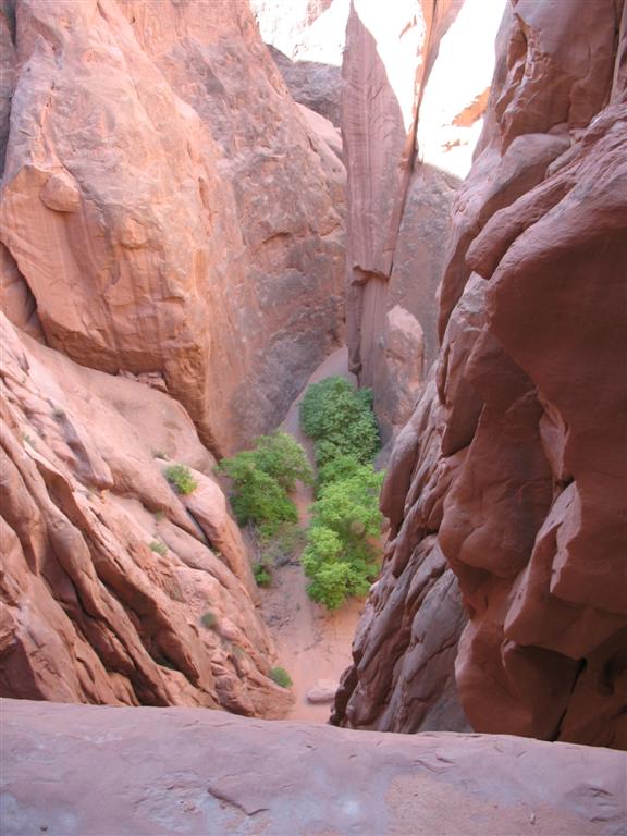 Looking down the last rappel in Lost and Found - Arches National Park