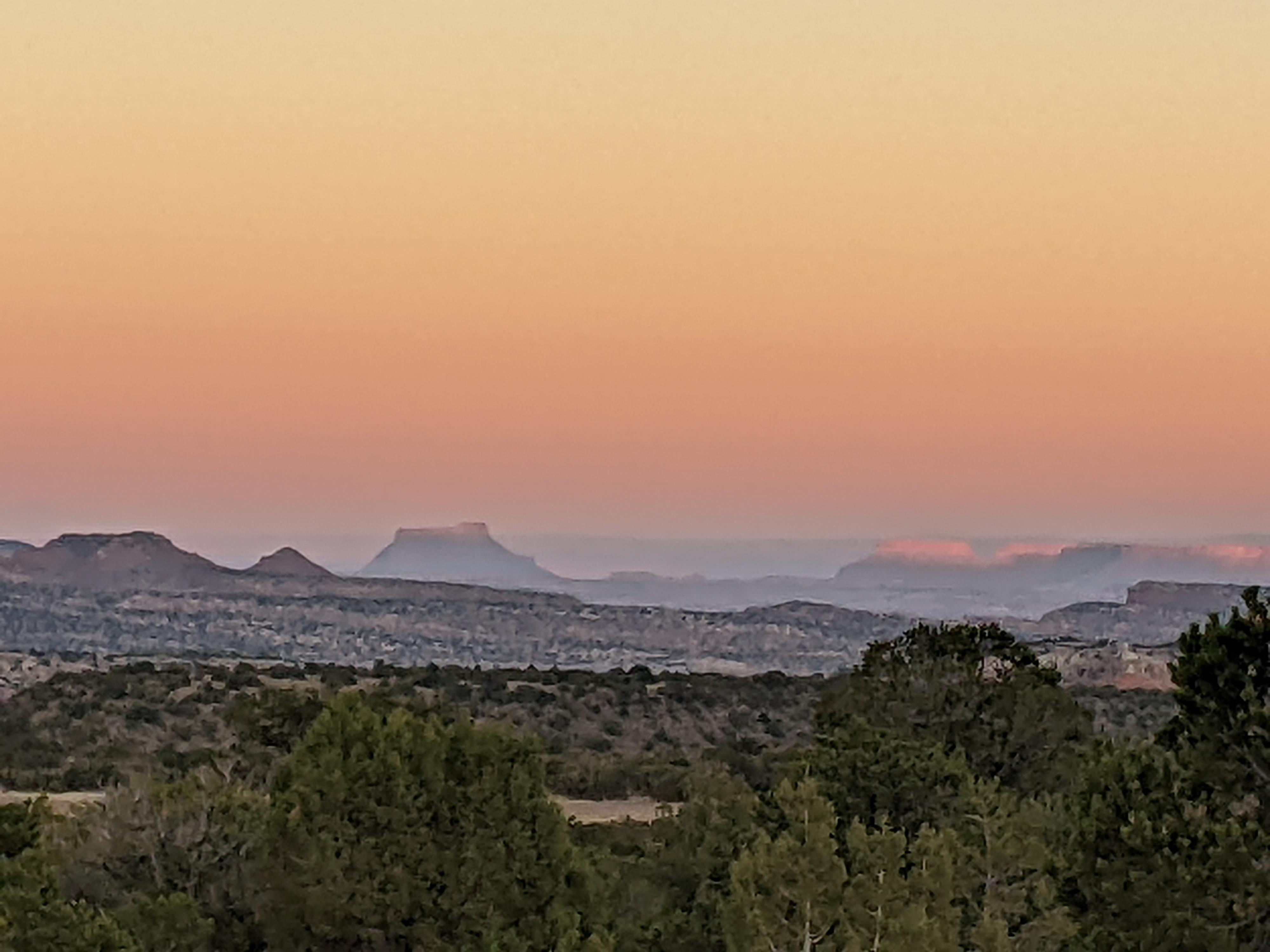 Looking toward Factory Butte during a smokey sunset from the campground.