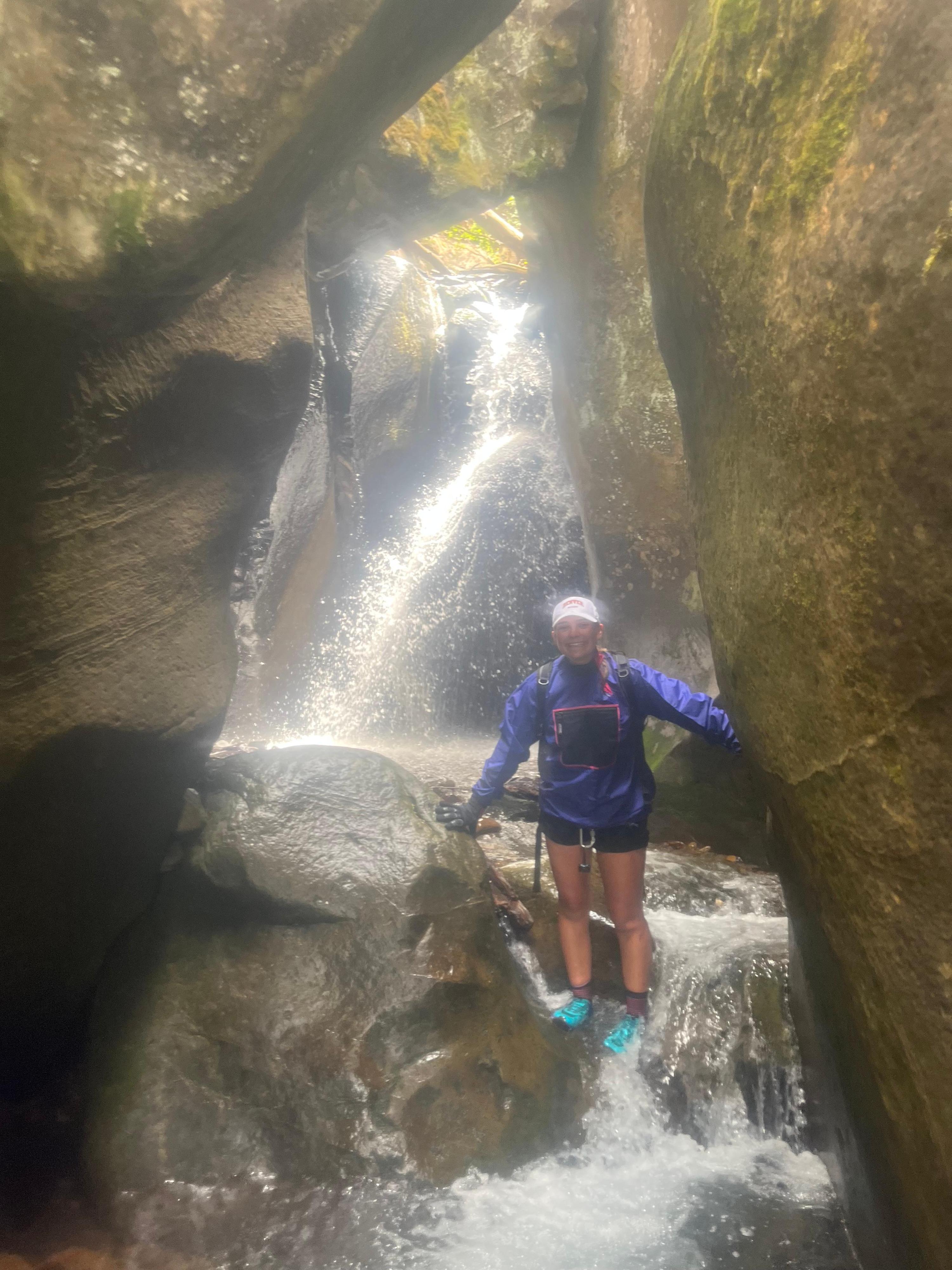 First waterfall dropping into the canyon