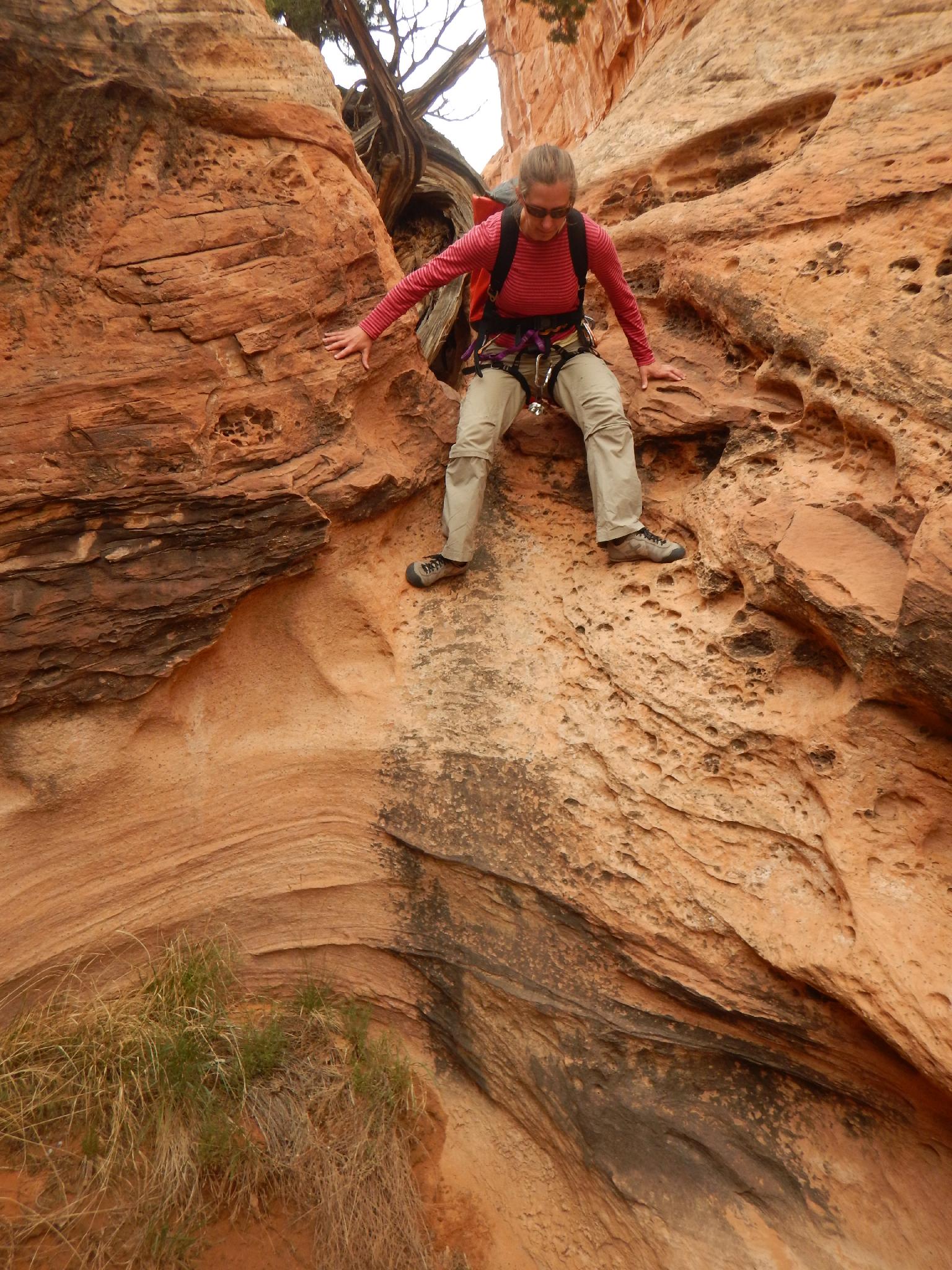 Diane down climbing on the way to the bridge.