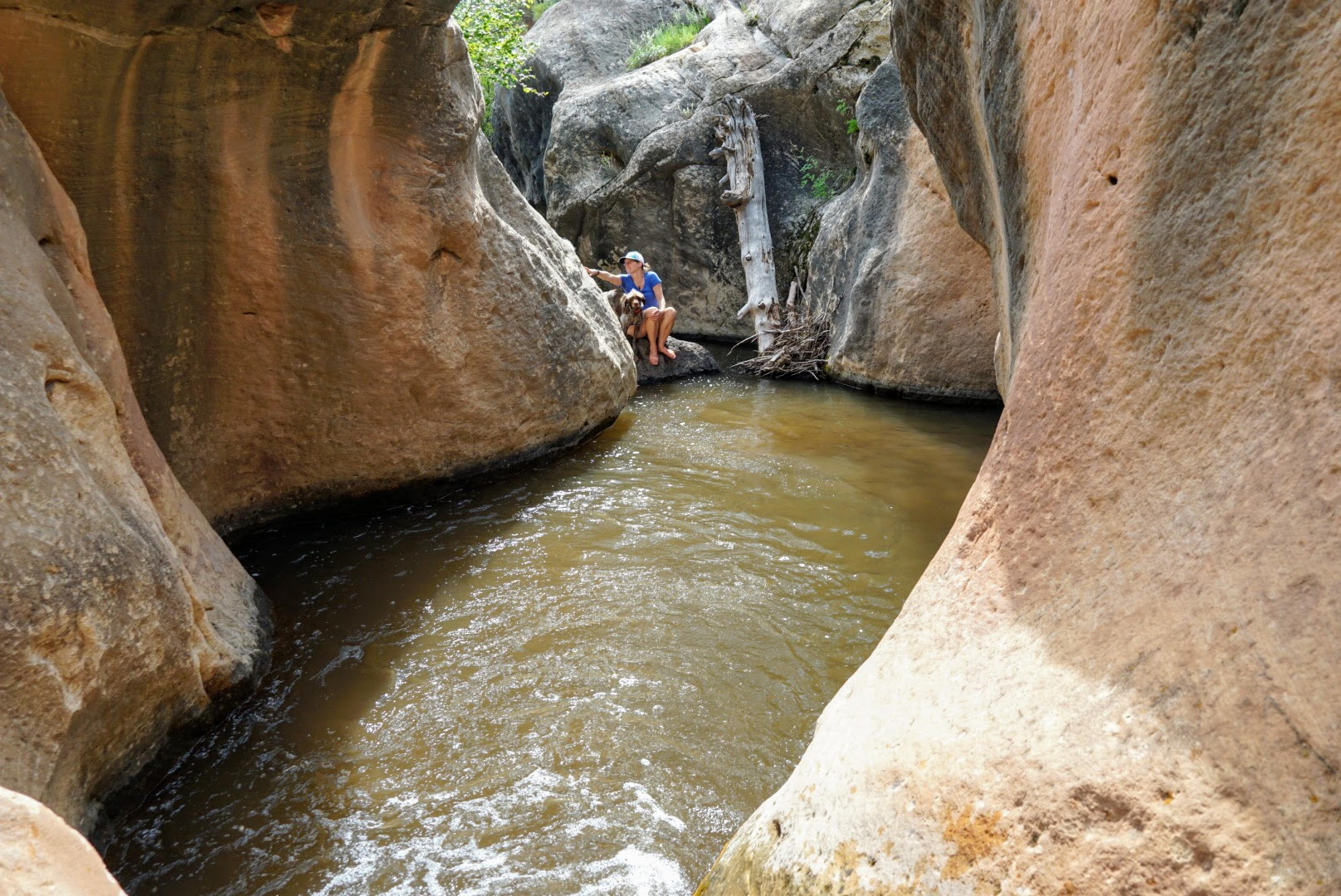 Diane and Abby enjoying Pleasant Creek on a hot summer day.
