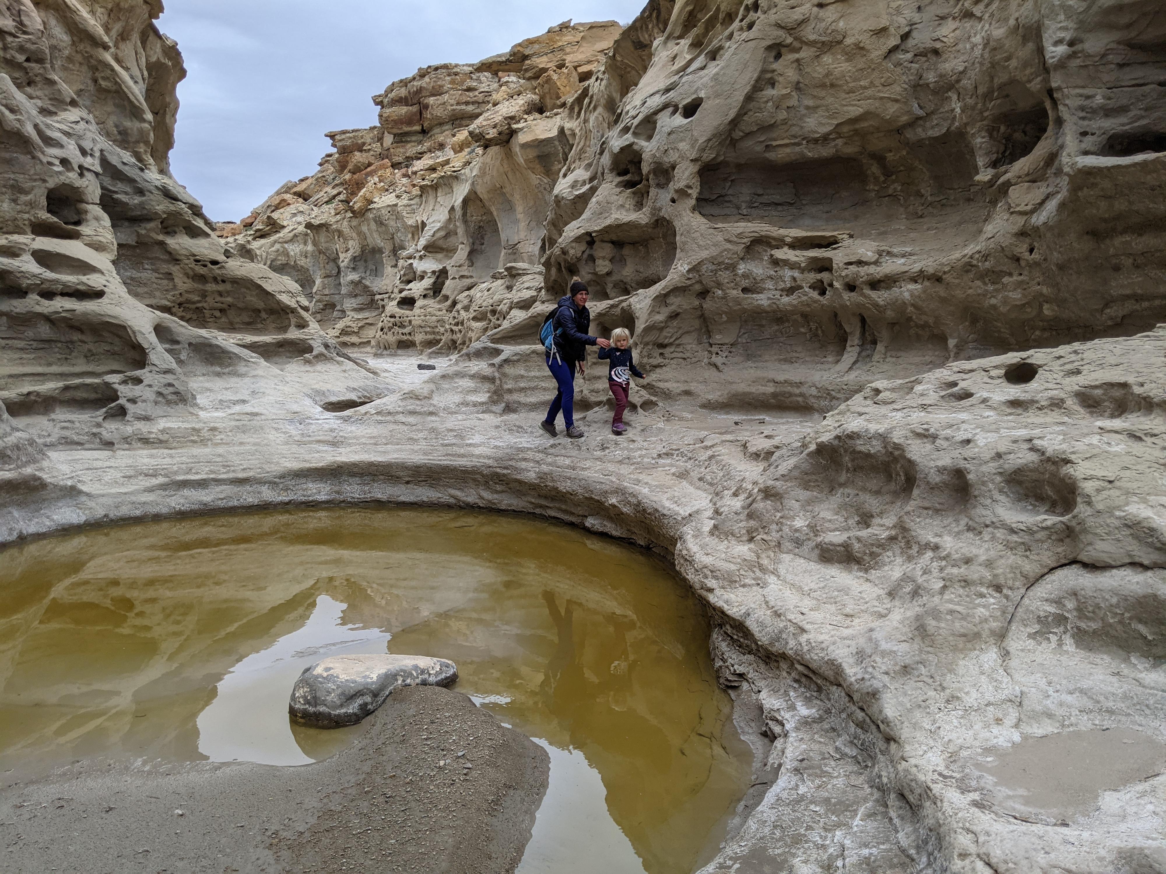 Diane and Ruby avoiding water in Neilson Wash