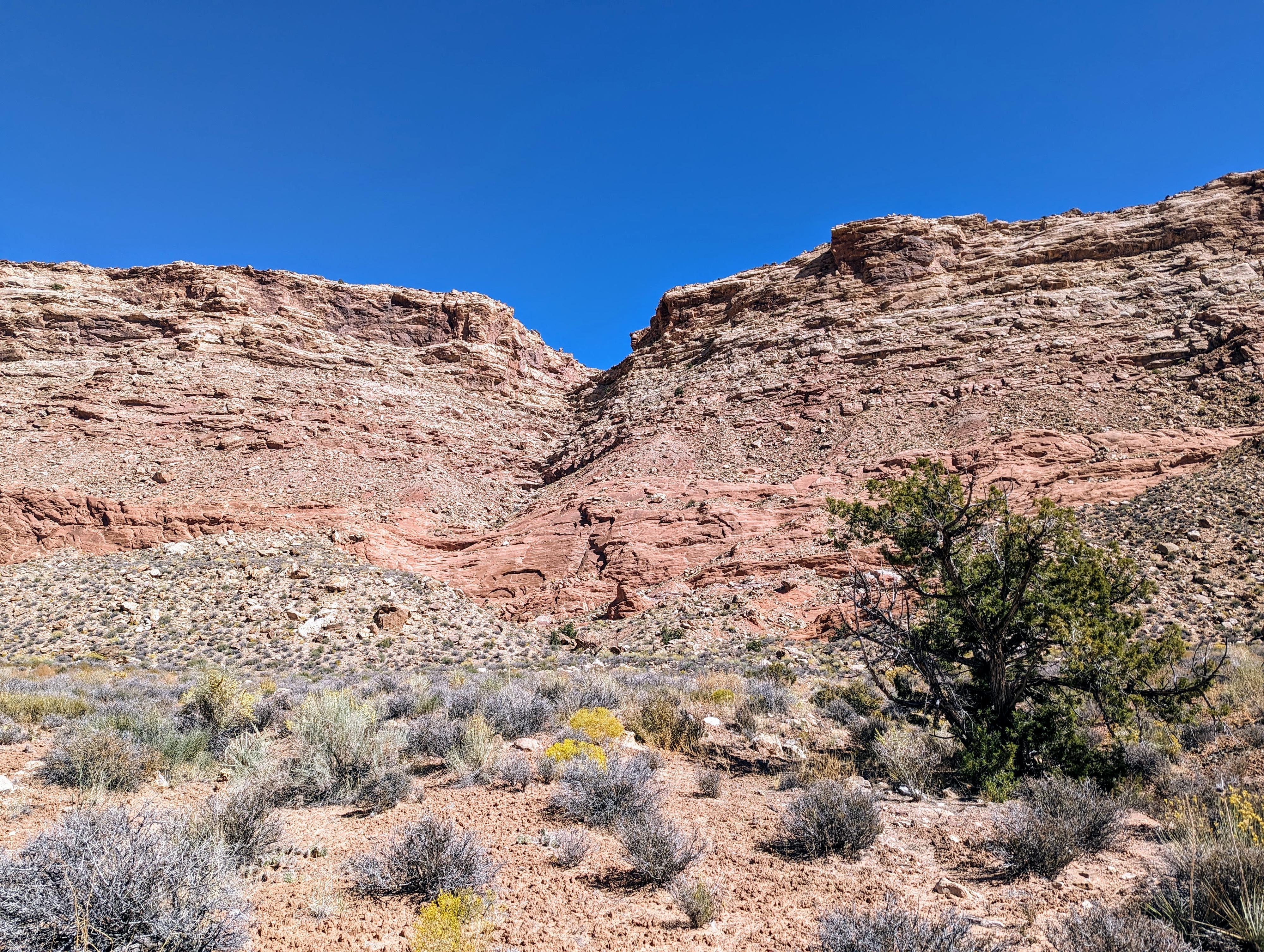 Looking up the gully that is the Shortcut Approach! Easier than it may appear in the photo.