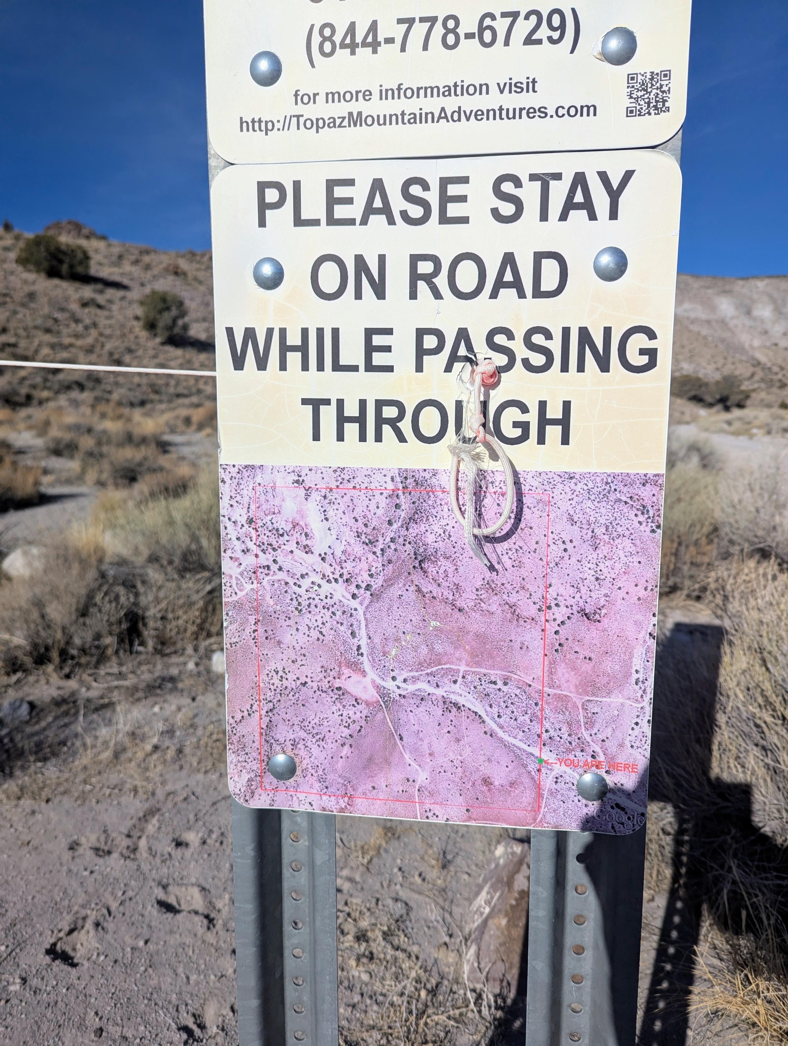 Warning sign around the private mining claim.