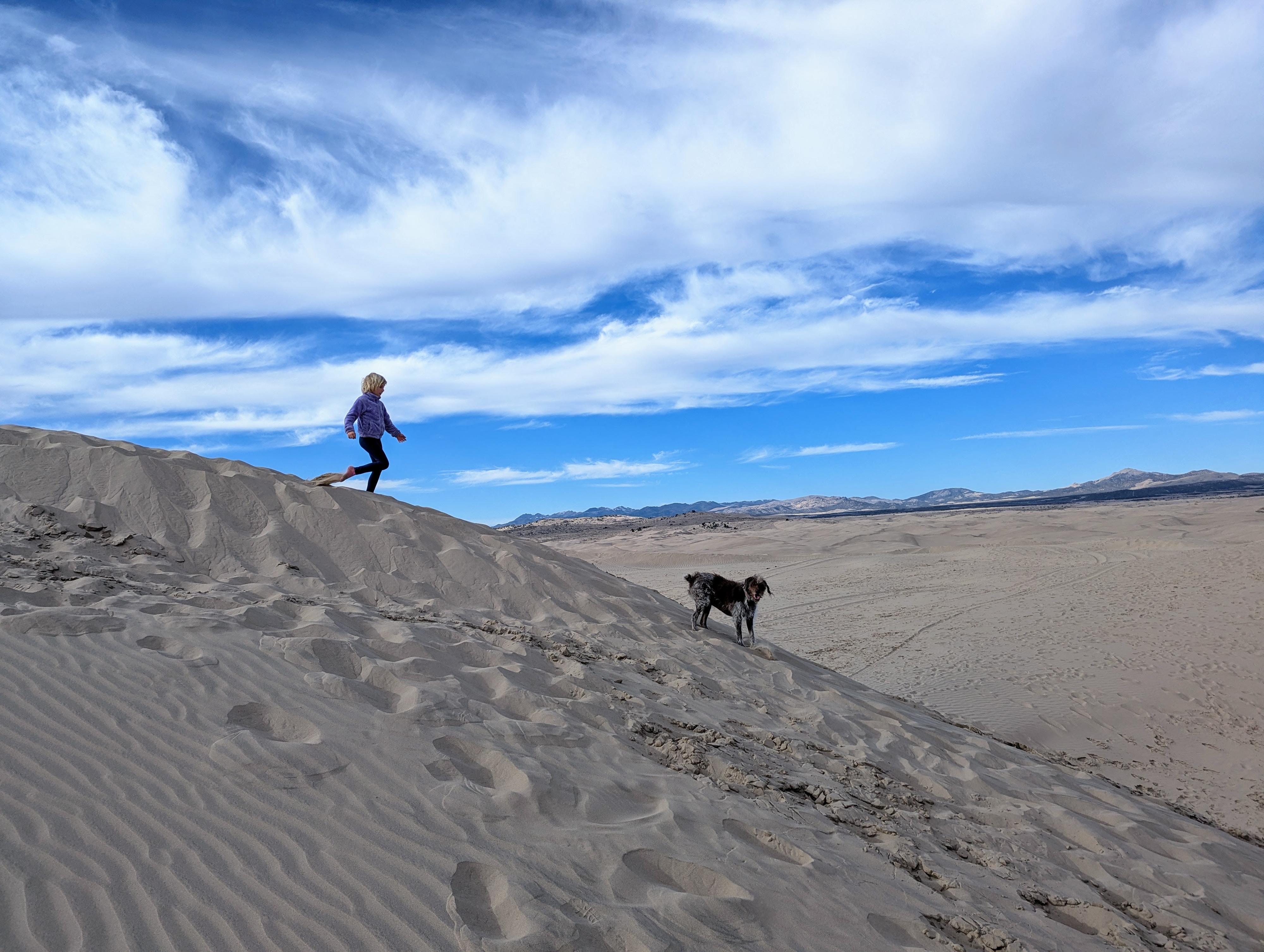 Playing on the dunes during a warm winter day.
