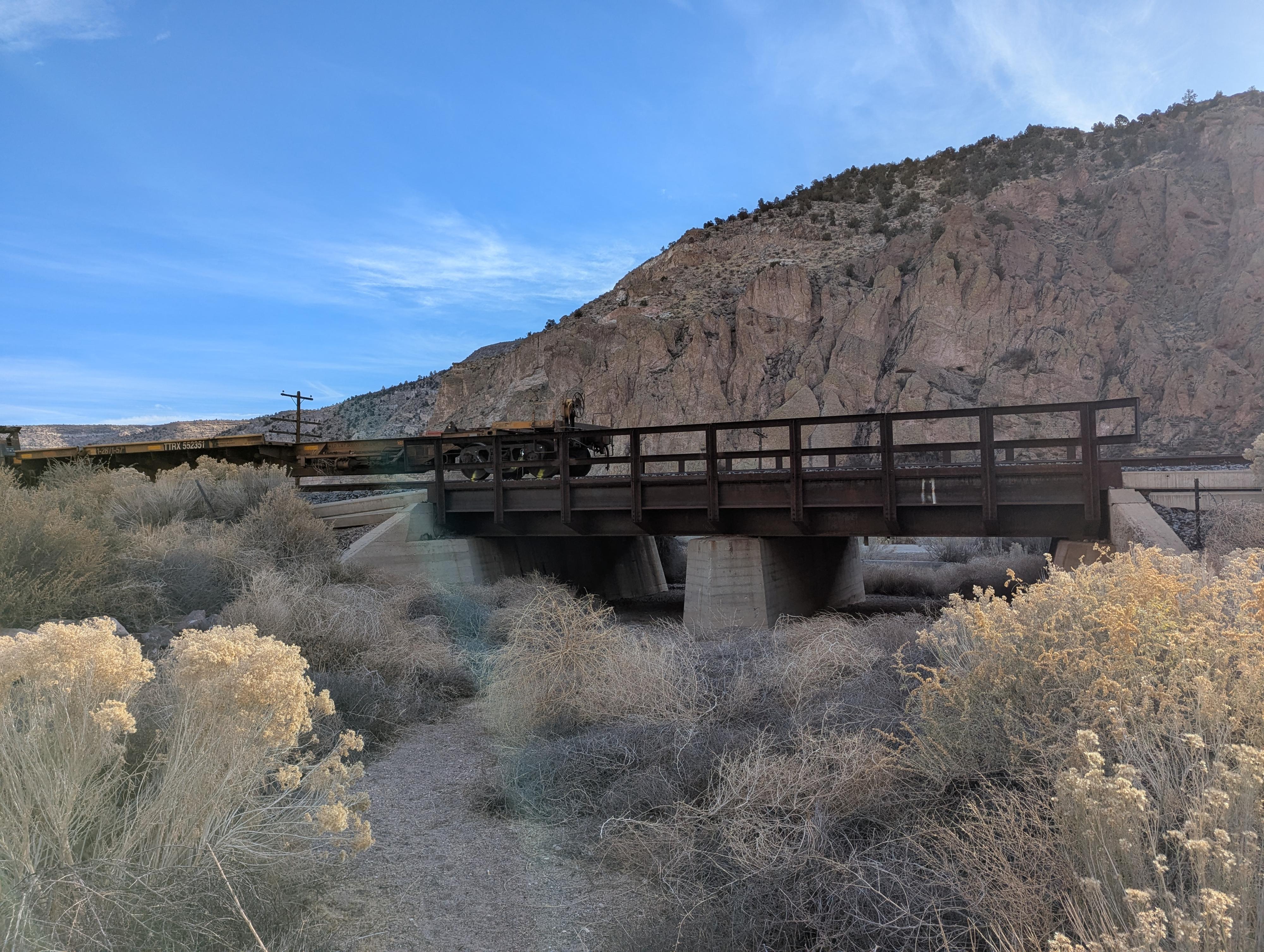 The railroad bridge you go under to get to site 1. This is looking back toward the road.