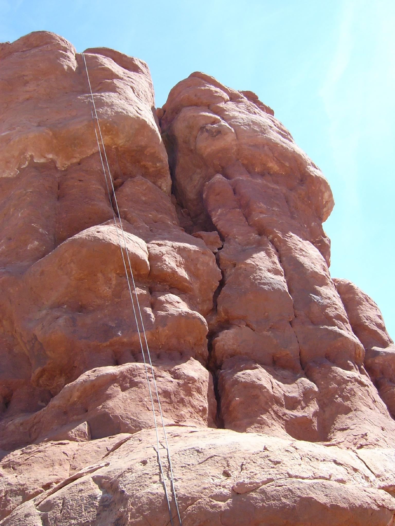 The route to the right of the rappel.